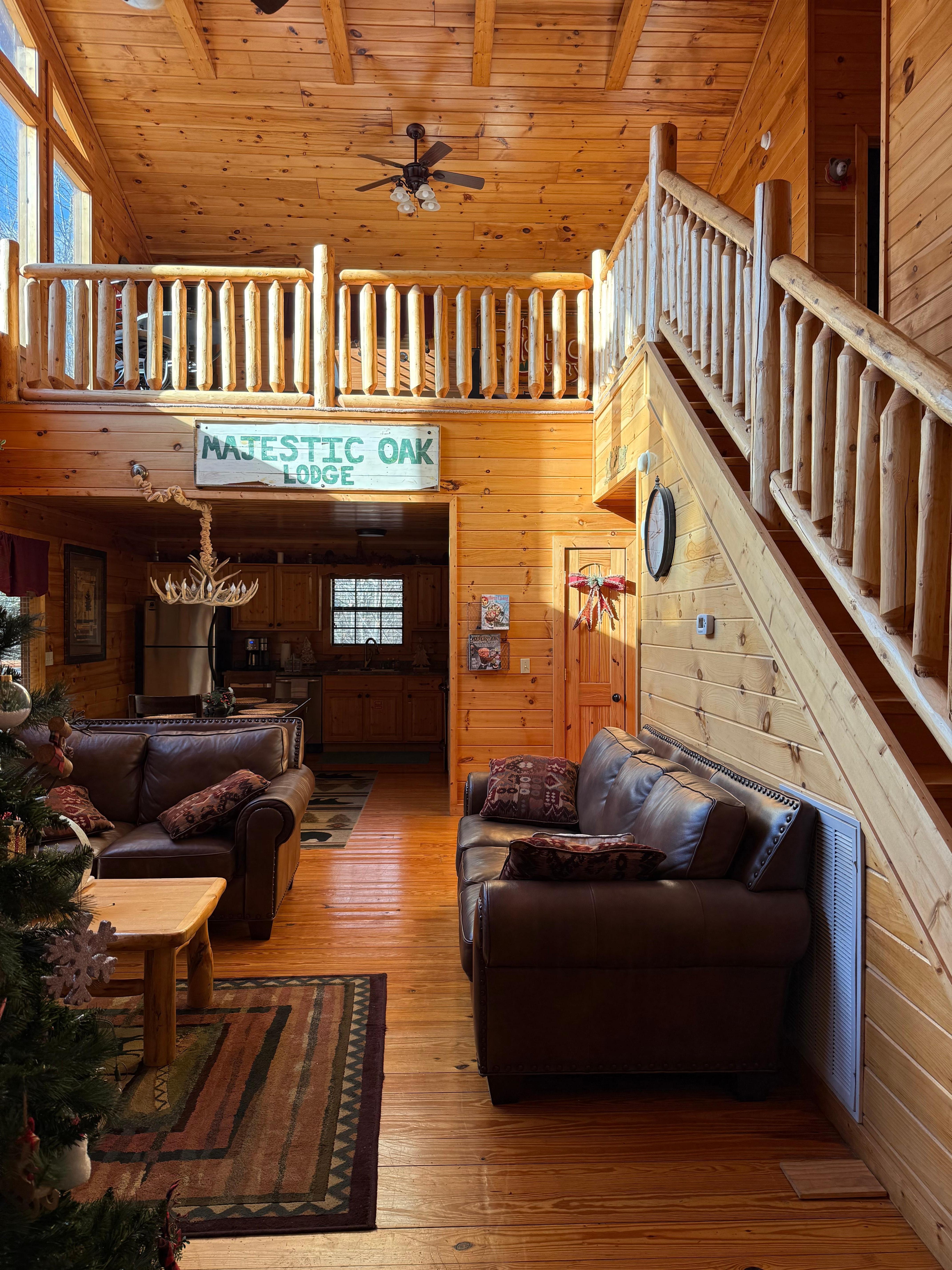 Majestic Oak Lodge is a beautiful 3 bedroom/3 bath luxury log cabin in a small security-gated mountain community that is centrally located between Gatlinburg and Pigeon Forge.