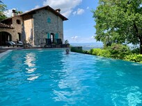 Impresionante vista. La casa de piedra tiene una gran cocina de lujo, una gran terraza y una piscina infinita de agua Saltz en suite. Es raro encontrar la piscina como una extensión natural de la casa y la terraza. Esta magnífica casa de piedra en 4 hectáreas de terrenos privados con vistas panorámicas de Val di Chiana, incluido LagoTrasimeno, está rodeada de jardines con viñas y olivos recién plantados. "Perejil, salvia, romero y tomillo" a mano en la terraza para su cocina italiana.