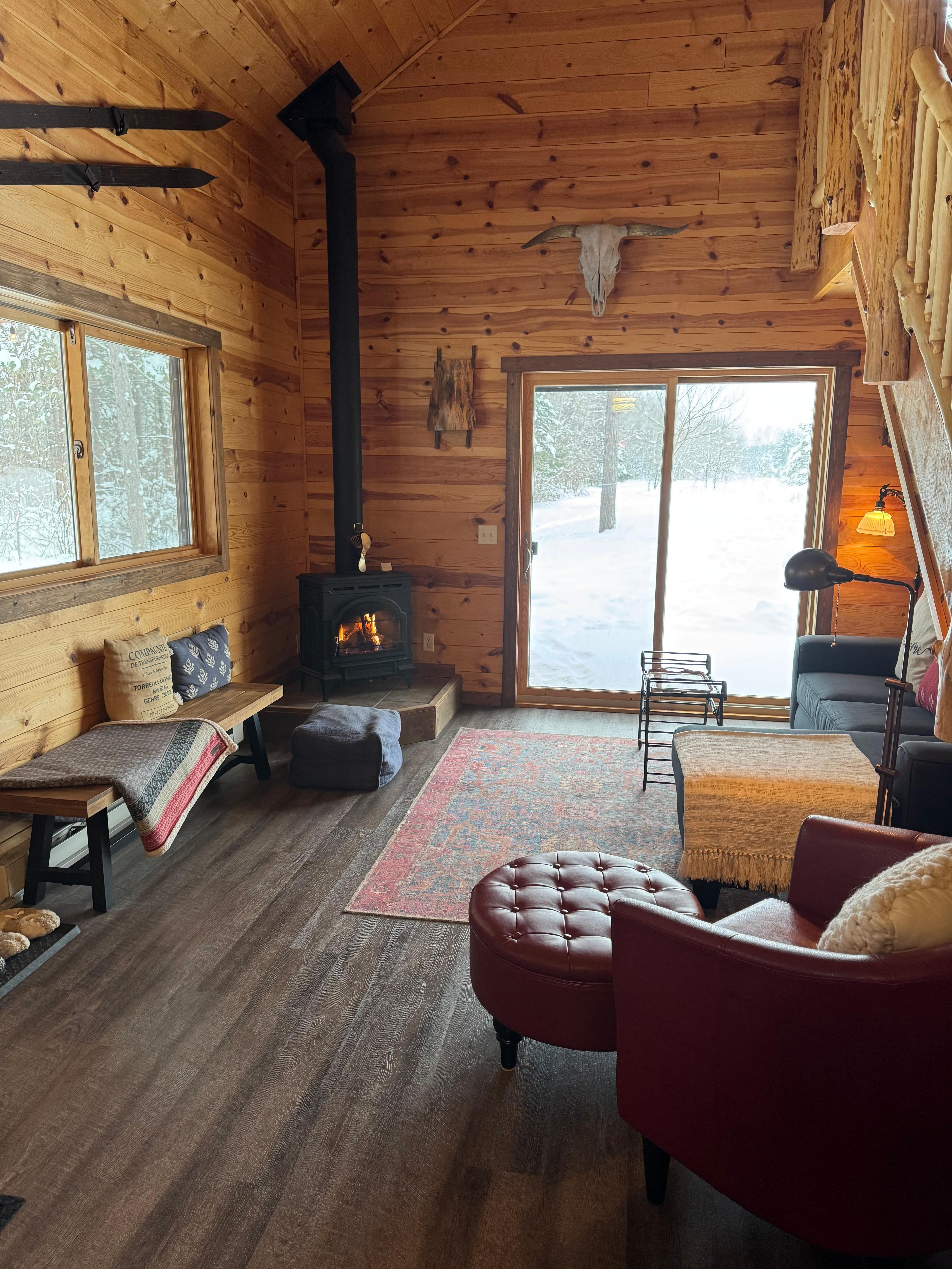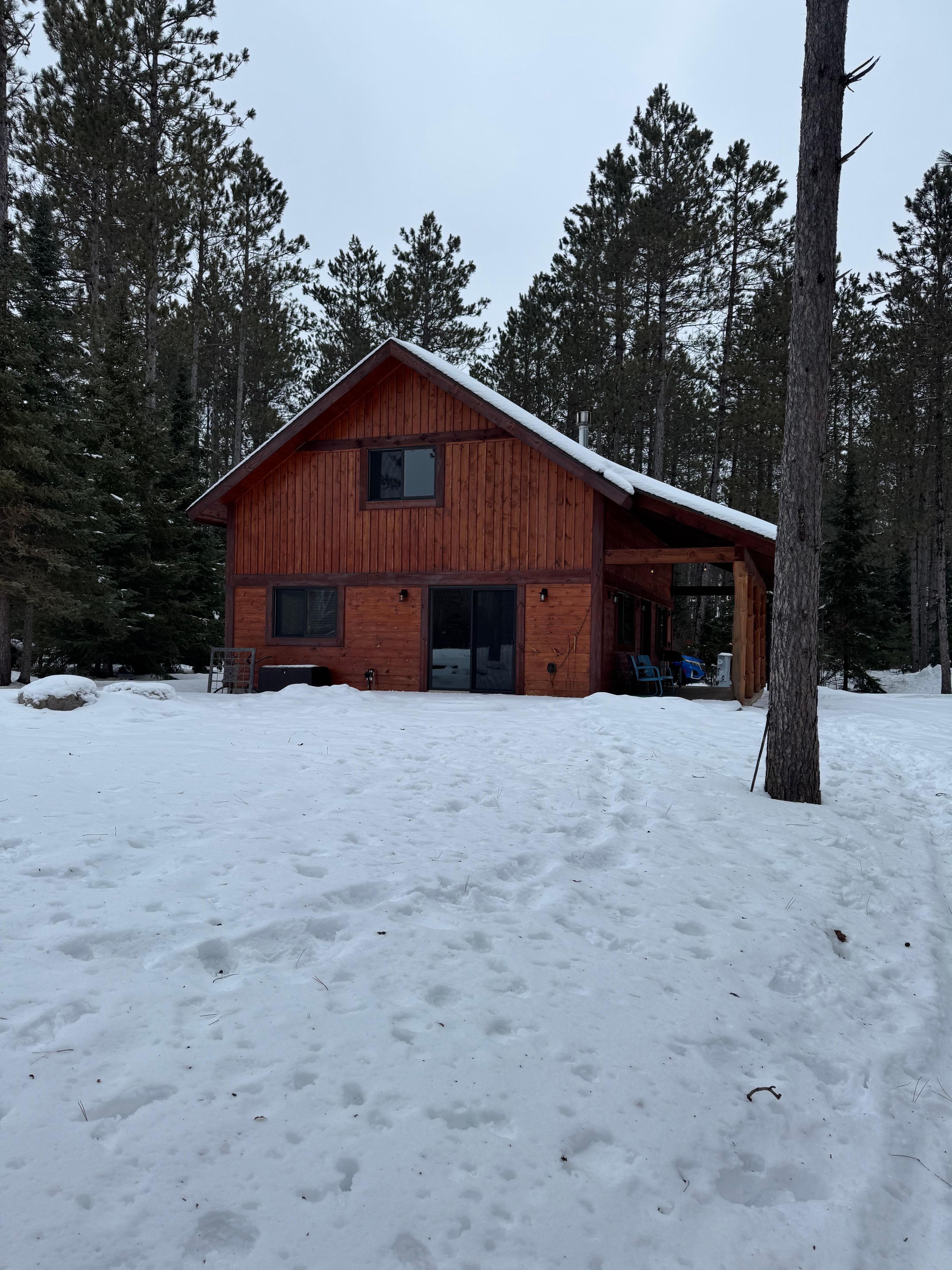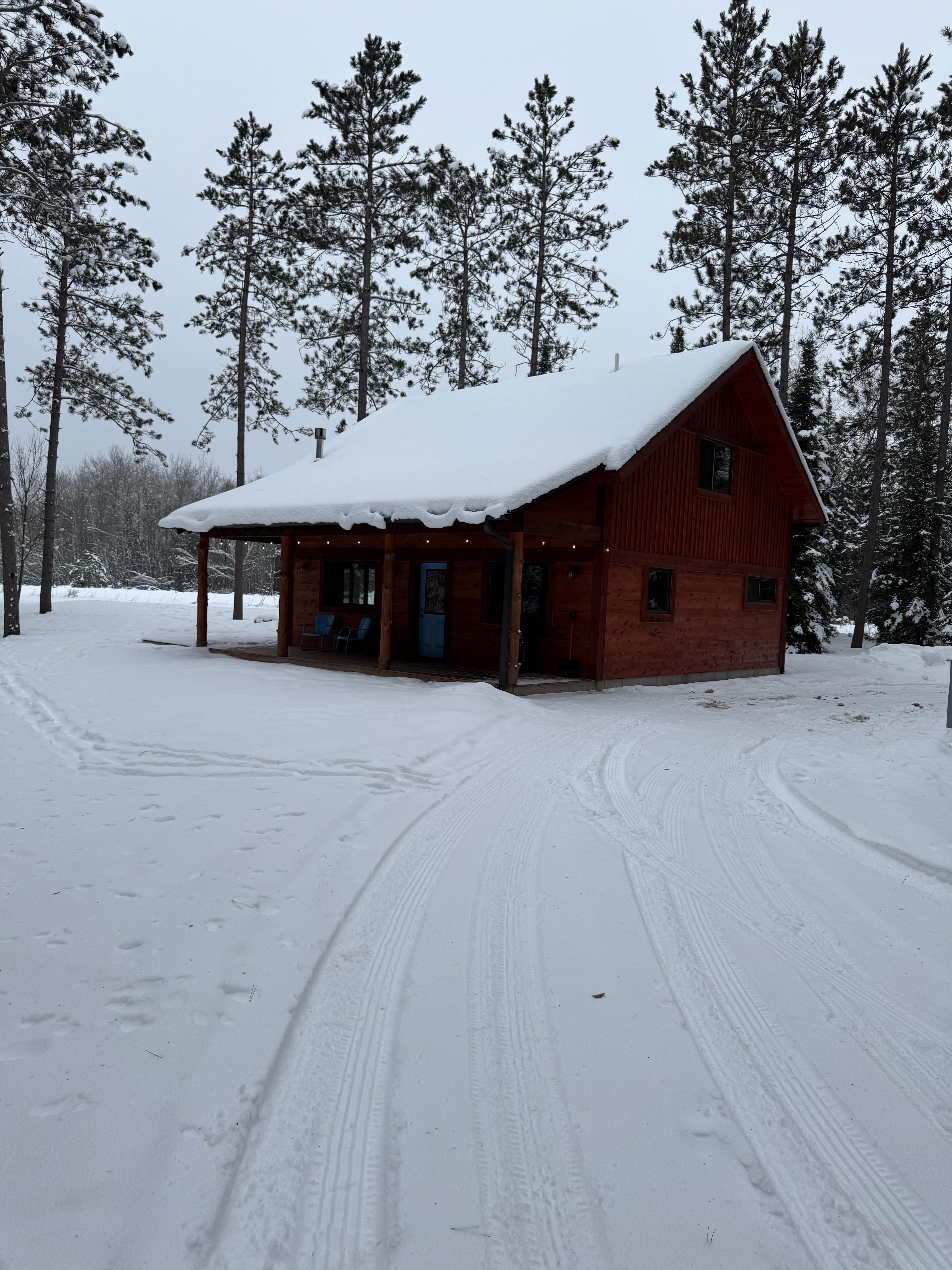 Spacious Newly built chalet style ski-in/ski-out trailside cabin on The Brook trail system with direct access to the American Birkebeiner 90 kilometer cross-country skiing trail system - - skiing, snow-shoeing, hiking, mountain biking right outside your door - stunning new Fire Pit and Deck for bonfires and star-gazing overlooking 10-acres of pristine forest. Sleeps 4 comfortably with 2 full bedrooms and a massive loft - Nestled on the CAMBA/Birkebeiner cross-country ski and mountain biking / hiking / snow-shoeing trail right out your front door with access to The Brook, Maqwa, and Fish Hatchery trailheads - just minutes away from the Namekagon River - a cross-country skier's / snow-shoer's / mountain biker's / hiker's true Nirvana. Graciously situated in the Northwoods and perfect for entertaining - well-equipped, fully furnished kitchen with gas stove/oven and fireplace, spacious outdoor wrap-around deck overlooking 10 acres of pristine forest. Enjoy sunset views from the large wrap-around porch with gas grill in this 2-story, knotty pine chalet newly built in 2021 - the chalet combines cabin comfort with a true North Woods experience. Enjoy the Yoga Nook in the chalet's upper-level Loft (complete with yoga mats, stretch bands, yoga strap, and yoga blocks). Work-From-Home from the chalet, thanks to reliable, high-speed WiFi/Internet. Absolutely no smoking and no pets - full damage deposit with-held for any smoking or pet situations.
