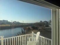 OLD CROW'S NEST is a gorgeous 4 bedroom, 3 bath waterfront home just minutes from the uncrowded sparkling soft sand beach in Bayside Village at Bay Creek Golf Resort. Views, views, views across the little freshwater lake and out to the Chesapeake Bay. Free sunsets for all! When vacationing at Old Crow’s Nest, be ready to enjoy a Resort lifestyle! Comfortably furnished including 2 king-sized beds, this beach home is a great place to relax and unwind. The 2 outside decks overlooking the water are perfect places to just kick back with your morning coffee, afternoon iced tea or evening sunsets. The light-filled open floor plan and spacious great room with fireplace offer plenty of room for your whole group. First floor den offers a quiet space with a TV. Enjoy your meals in the lovely dining area overlooking the water. A spacious kitchen with breakfast bar seating is well equipped. On the 3rd floor, the Crow’s Nest awaits you with its amazing water views and sunsets! Equipped with table perfect for cards, chess, board games, etc. Fix snacks in the Crow’s Nest’s mini-kitchen or just relax on its queen sleeper sofa. * There is an outdoor camera on the second floor deck, however, it faces towards the bay at a high angle so none of the deck can be seen.