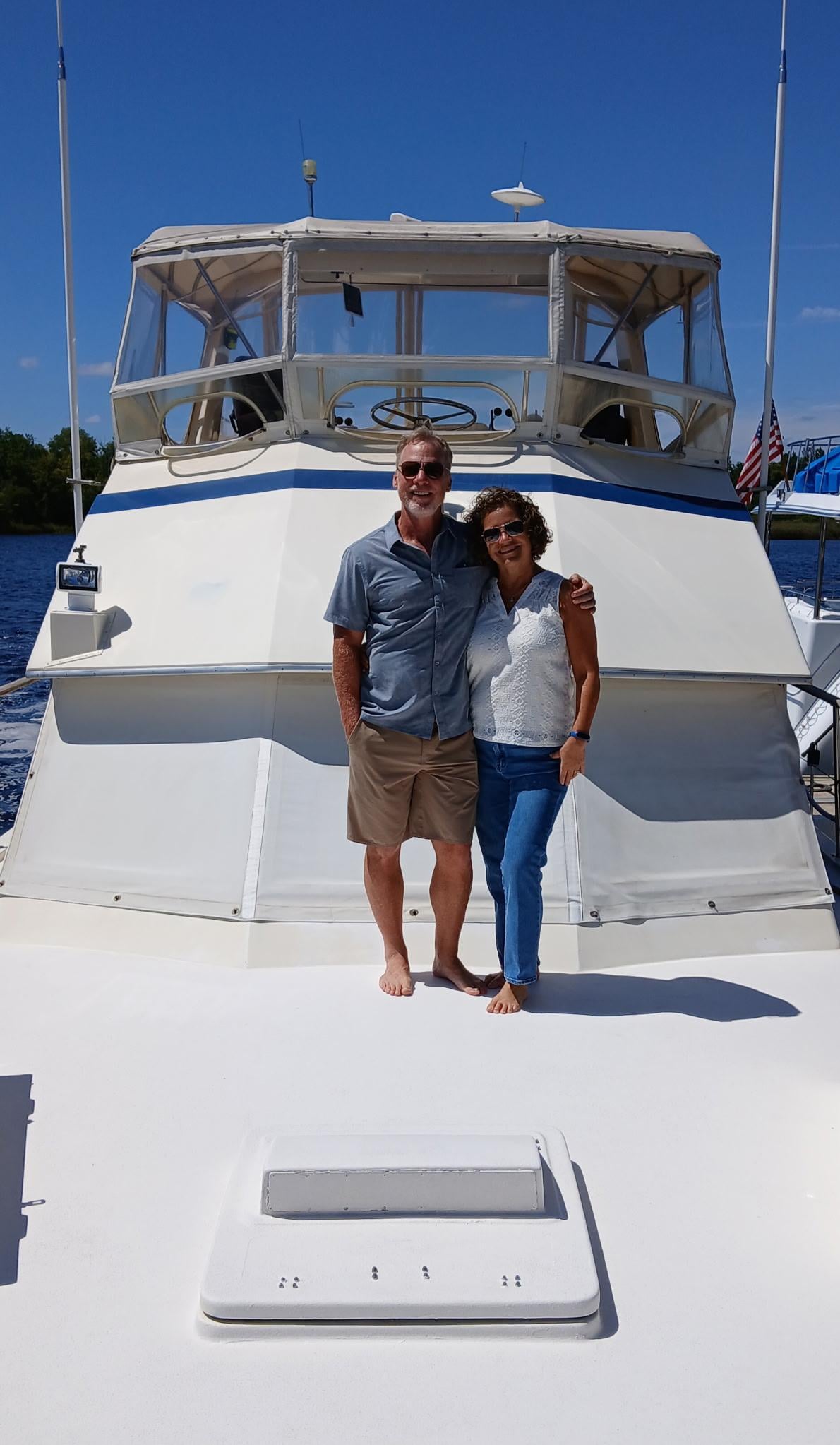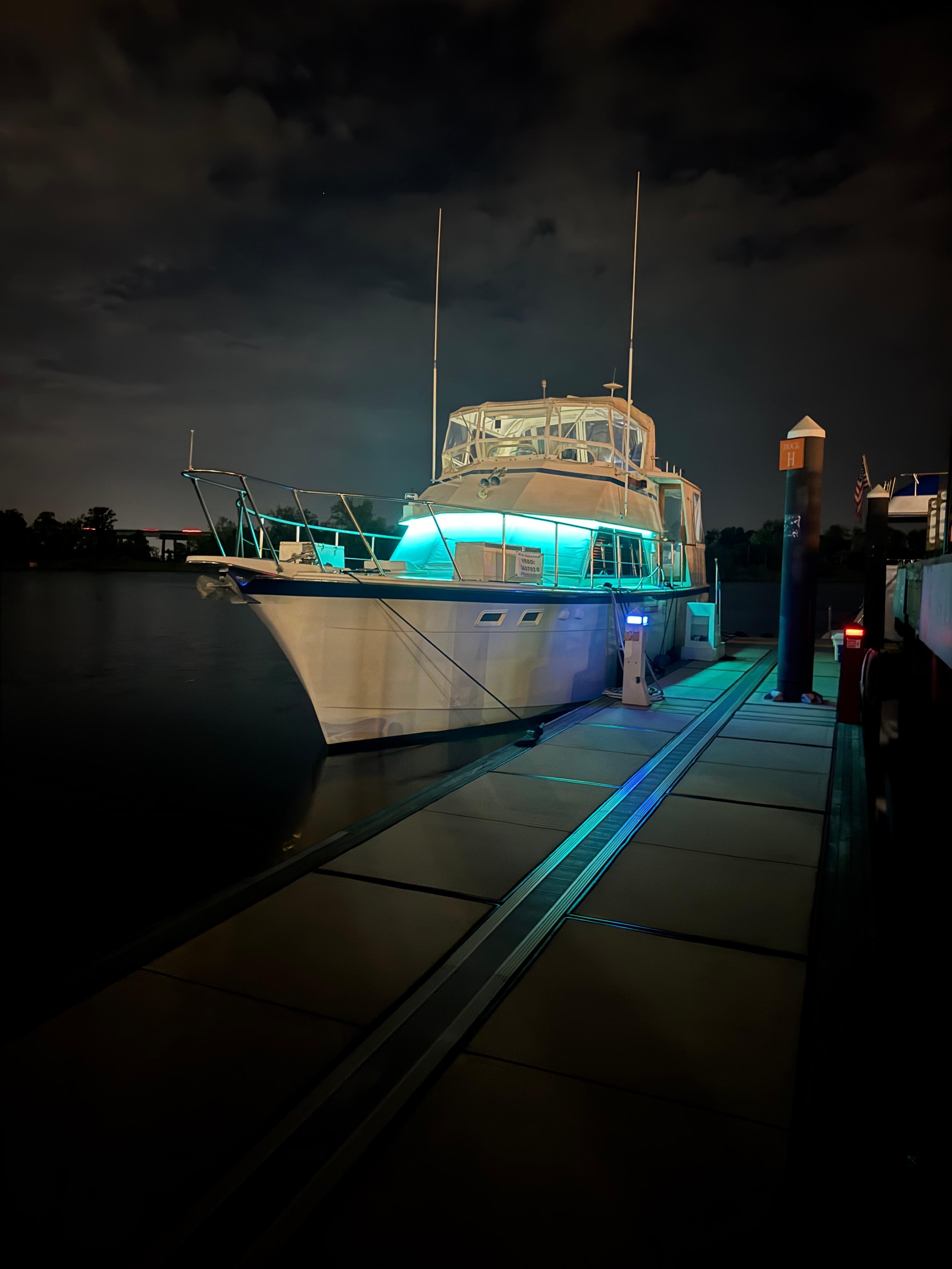 Onboard, you will enjoy all the comforts of home and far more amenities than a hotel room including a main salon (living room), full galley (kitchen) with glassware, dishes, full size fridge, microwave, stove and coffee maker. Boat includes ample storage/closet space, "shore power" (i.e., full electricity), AC and heat, hot/cold water, and linens/towels. There are three TVs with DVDs (master, aft-deck and salon) and two Firesticks.