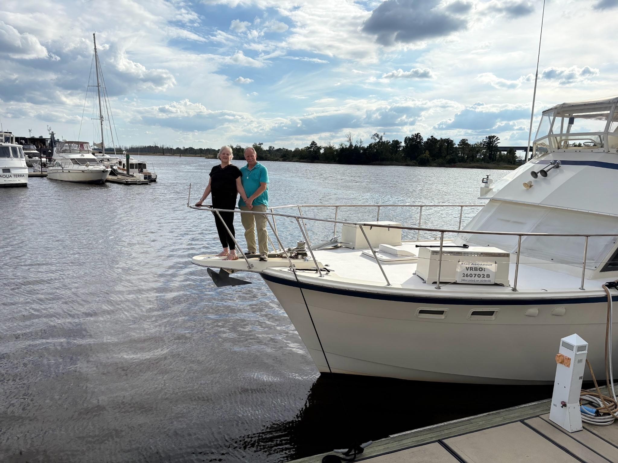 This beautifully furnished 48' Hatteras yacht offers a unique experience to stay directly on the Cape Fear River. In the heart of historic downtown Wilmington, it is on the famed "River Walk" and ideally located between the Convention Center and the new Live Oak Pavilion Amphitheater at Riverfront Park. Walk to shops, restaurants, bars and live music.