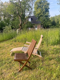 The house has two separate double bedrooms (1,40 x 2,00 / 1,80 x 2,00), with bedcouch in the romantic reading corner the holiday home can be used up to 6 persons. Well-equipped kitchen, wood stove, W-Lan, TV, washing machine with dryer -> everything there!