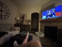The full finished basement includes a spacious family room with a large 70" screen TV for enjoying movie nights or sports. A bar table and stools doubles as a work space or place to enjoy a snack downstairs. Two spacious guest rooms each with queen beds, black-out blinds, and large closets and a full bath with tub/shower combination complete the lower level. A queen size luxury blow up mattress is also available for additional sleeping option.