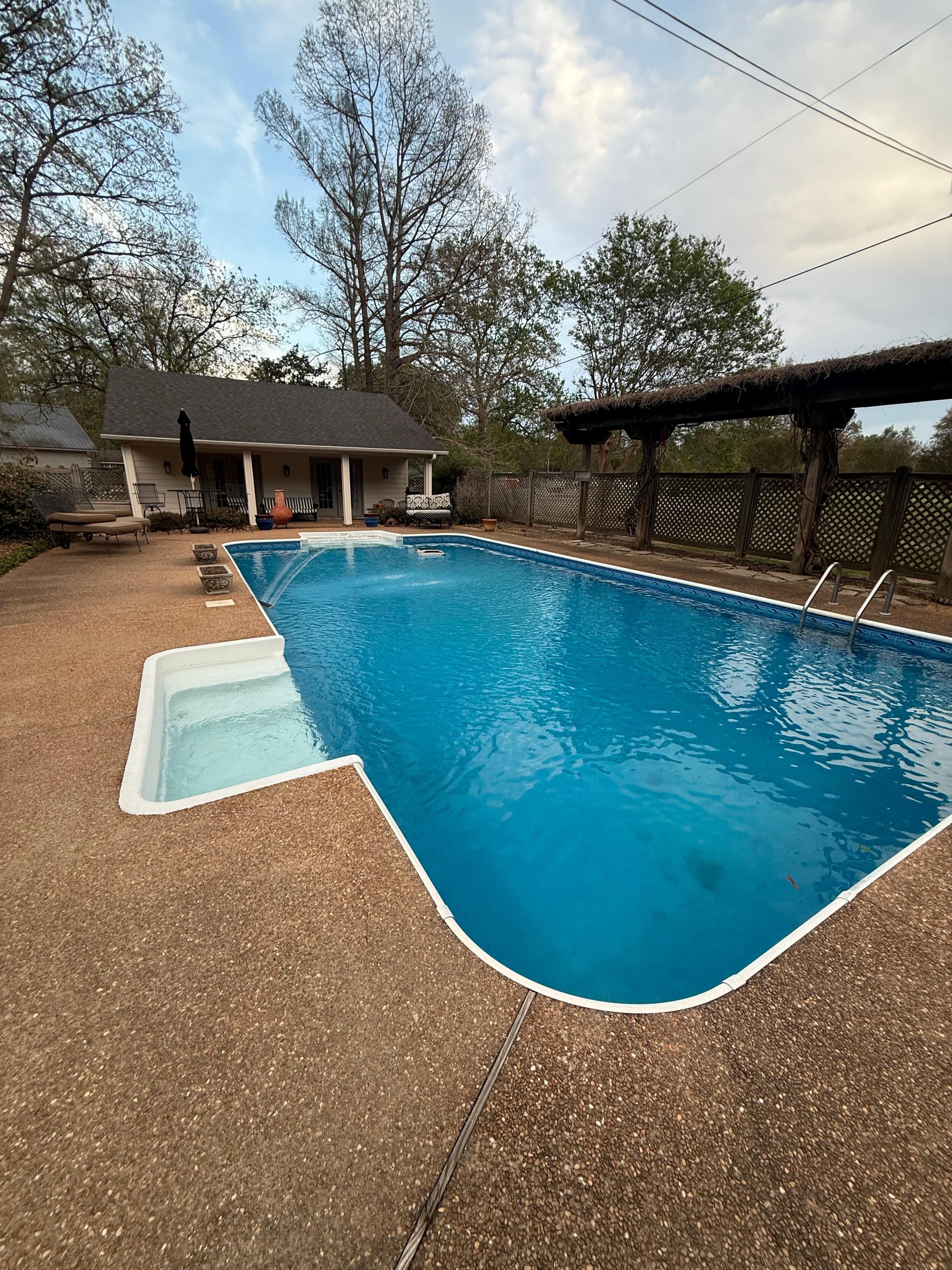 We just loved our little pool house escape. Great location for respite from funky dowtown Clarksdale. It's quiet and being on a golf course had lots of big trees so we could go birding from a chair! We had everything we needed, our host John was most accomodating and enjoyed a lot of time sitting around the pool. Couple of weeks too soon to jump in sadly.I would not hesitate to go back to this little piece of heaven! Perfect for a couple as only one bed/bedroom but the couch wasn't bad for a third. Highly recommend!