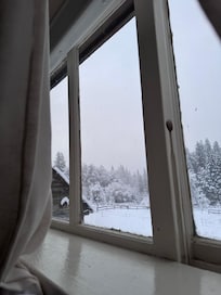 The homestead occupies 15 private, peaceful acres and is a destination of its own, or a fabulous base camp for the area's many outdoor activities. It's only 25 minutes to either Steven's Pass or Leavenworth. Without even getting back in the car, you can cross country ski, snow shoe, sled, hike, bike, swim and mountain climb. There are chickens laying eggs, and our horses grazing in the pastures.