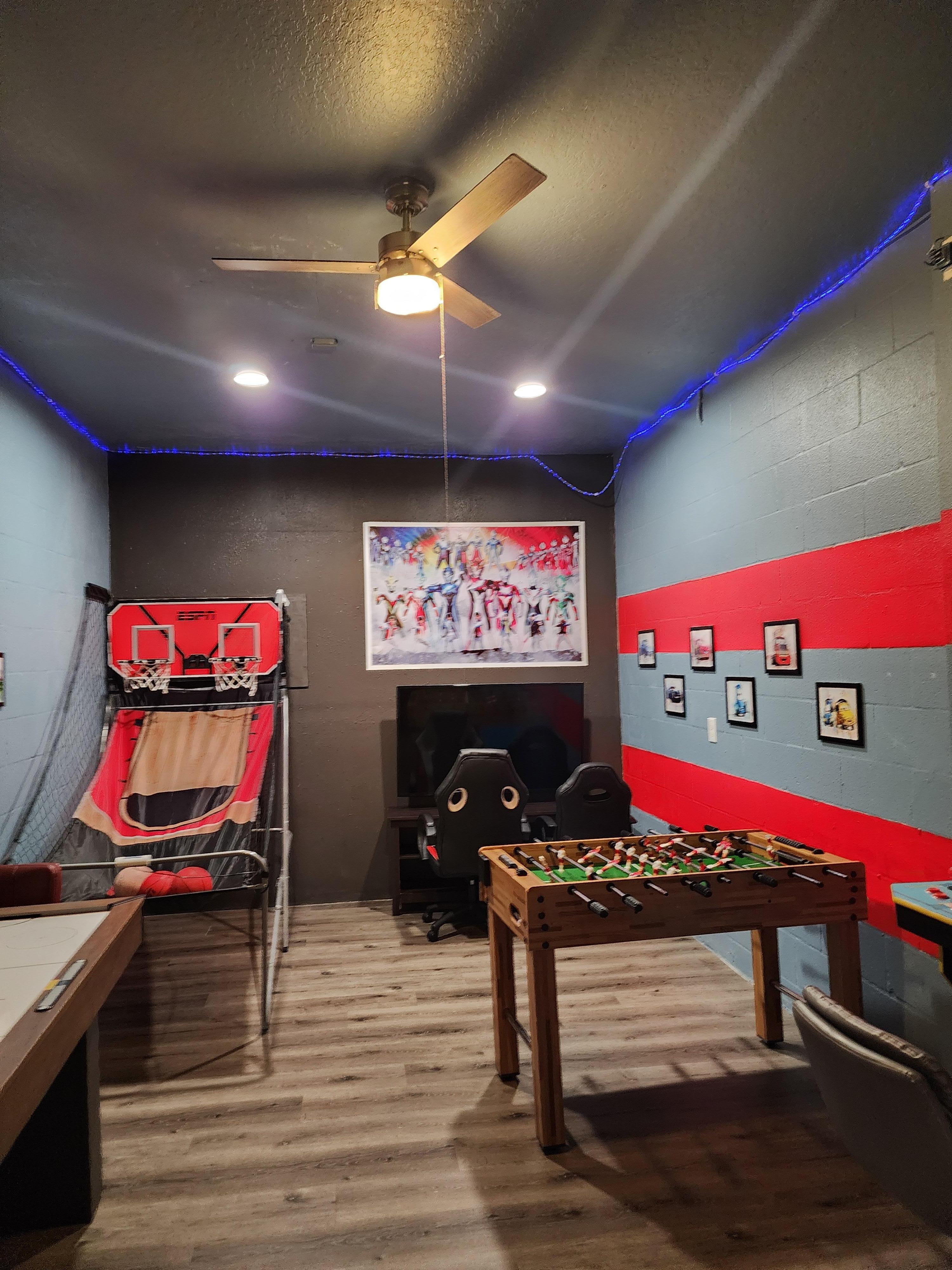 1. Garage/Game Rm: Air Hockey + Foosball + Basket Ball + Two (2) Arcade Stations + Disney Car Wall Exhibit