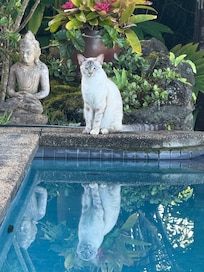 La propiedad está adosada con roca de lava, ajardinada con una variedad de plantas tropicales y muy privada.