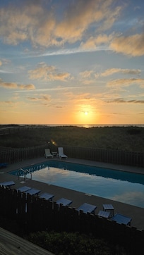 Beachfront! Need we say more? This property has a great open floor plan, it's spacious, with 2 full bathrooms, and very large ocean side deck. The first floor location allows for less stairs and easier access, such a perk when carrying your beach gear and other belongings. The location is great! It's an easy walk to the boardwalk area, several restaurants and bars. The central location also makes for a short drive anywhere else on the island or even to the bridge for easy access in/out of Wilmington.