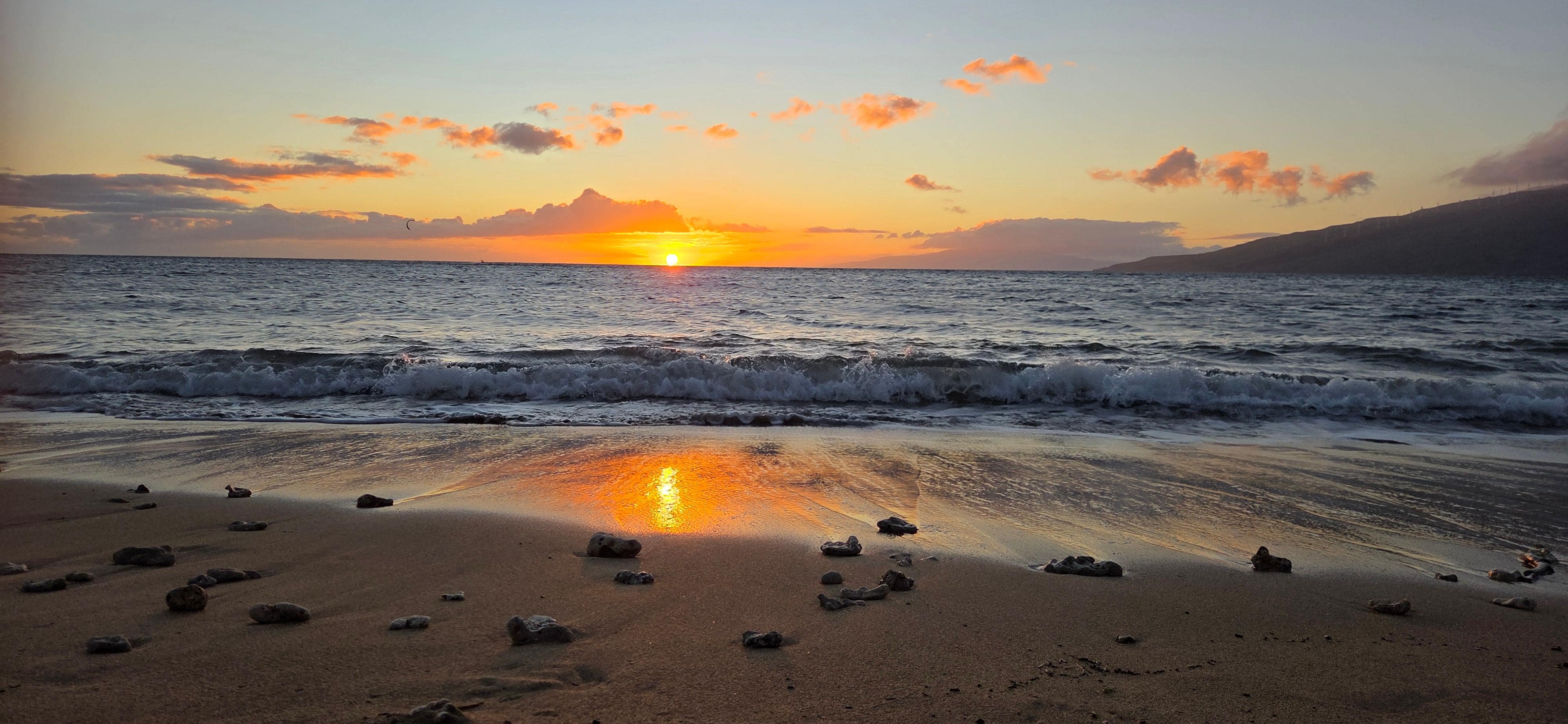 Beautiful sunset view in Maui. Clean and equipped with all our beach needs (beach chairs, umbrella, towels, beach toys and cooler). Easy access to beach and pool. Family loved this place.