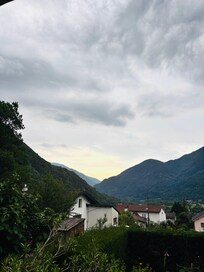 Casa alla Cascata: A hidden gem in the lush green Maggia Valley with a large garden with herbs, berries and fruit trees. The famous Maggia waterfall Cascata del Salto is in the woods just behind the house! Surrounded by vineyards. A warm welcome awaits you with our Border collie Bob and 2 Maine Coon cats. Centrally located in Maggia with all amenities, and a short drive from the Verzasca Valley, Ascona and Locarno on Lake Maggiore.
