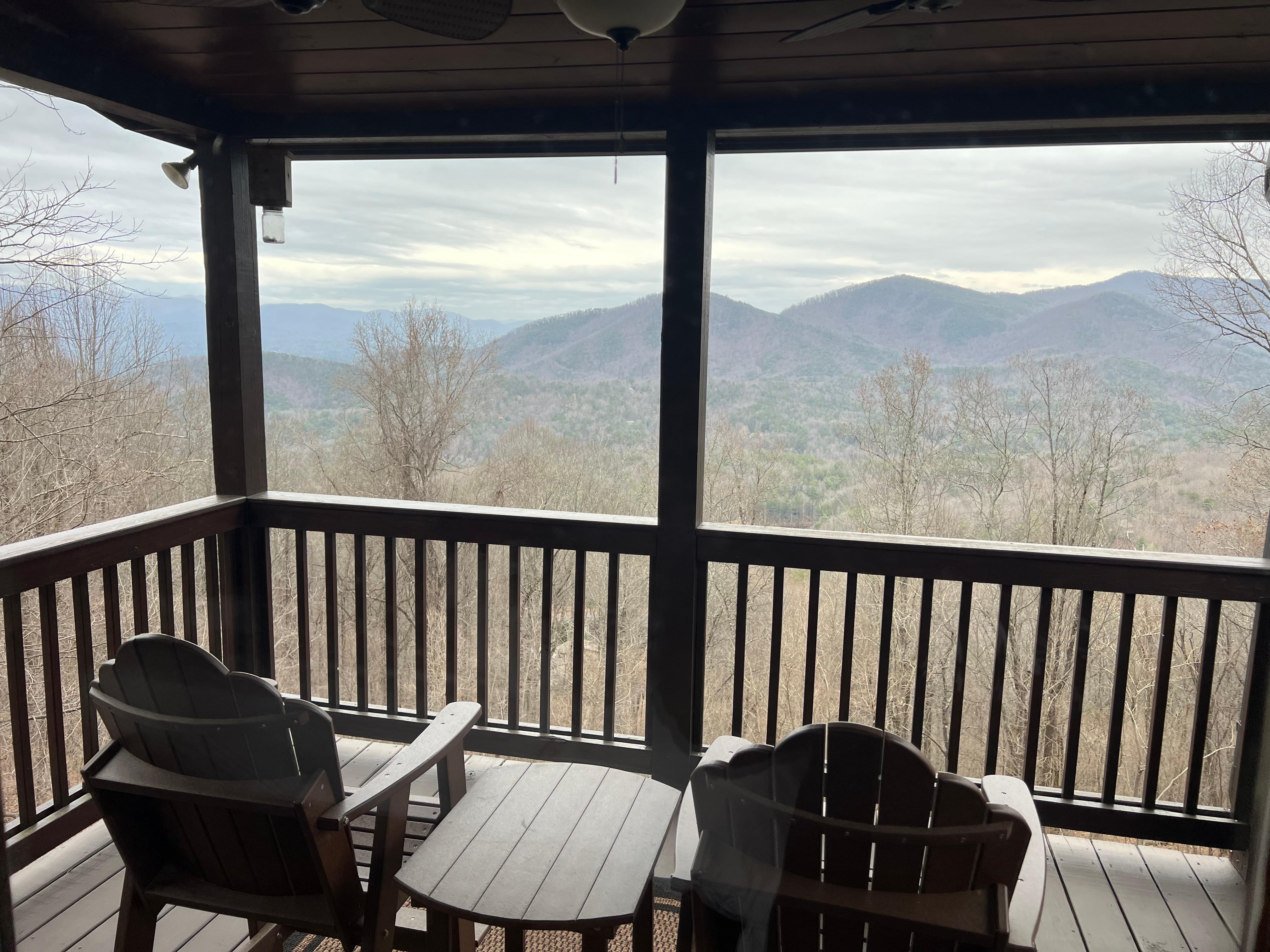 Wow! An Immaculate cabin with everything you could want! This 3 bd/ 3 Ba has everything! Bed and Bath on every floor, Brand New Hot Tub, Beautiful Great room with Gas Fireplace, Big 40 MI. views of multiple mountain ranges, two story large decks, seating on every level. Comfortable beds, Game Room/Media Room, Second kitchen in basement, All Paved Roads to Level stone driveway for up to 3 cars. 20 min. to dwntwn Ellijay and 35 min. to dwntwn Blue Ridge. NO PETS PLEASE! Come enjoy the view!
