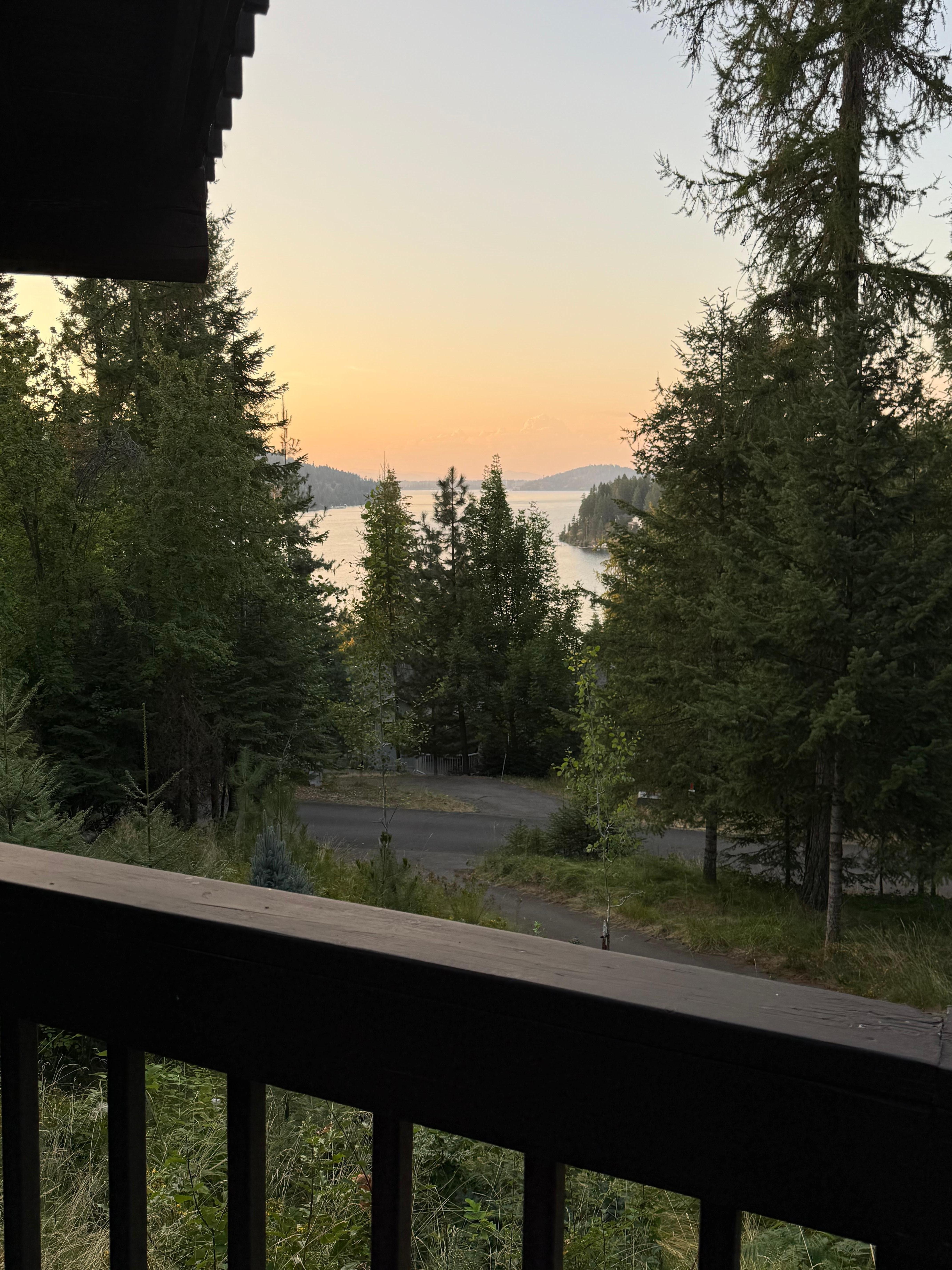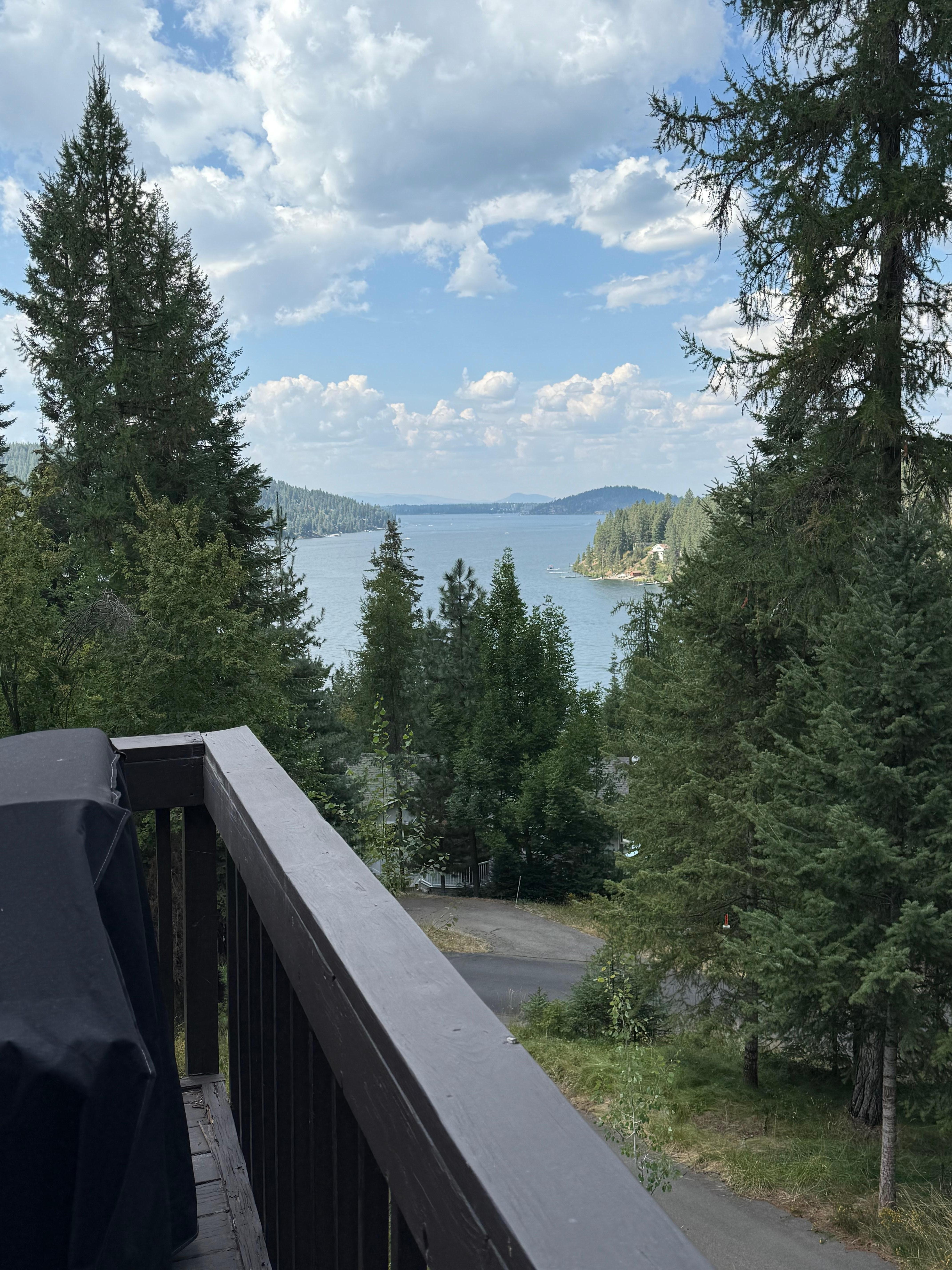 Welcome to the Eagle's Nest! A private lake cabin retreat that is perched up in the trees with tremendous lake views and a direct view to downtown CDA. Enjoy a spectacular bird's eye view of the fireworks over the lake on 4th of July! Enjoy a game of pickleball and a soak in the hot tub after a fun day on the lake. This home has 3 bedrooms and 2.5 bathrooms on nearly an acre of pine trees, maple trees and aspens. The architectural design of this home allows for epic views and many comfortable spots in an inviting living space and two large outdoor decks. The home has brand new memory foam beds and linens, wifi and 2 smart TV's, many games including chess and an old classic poker table. Enjoy the hiking, boating, fishing and adventures of North Idaho in this comfortable retreat.