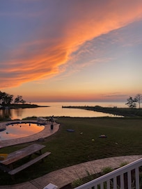 Property is 3 acres with private pier for crabbing, point with firepit and Adirondack chairs for s’mores, private pool with pergola & lounge chairs.