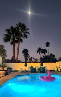 The property is an ultra private property with beautiful views of the mountains as you enjoy the vibey backyard with pool , hot tub and space to bbq and play backyard games. The neighborhood is quiet and centrally located to everything that Palm Springs has to offer.