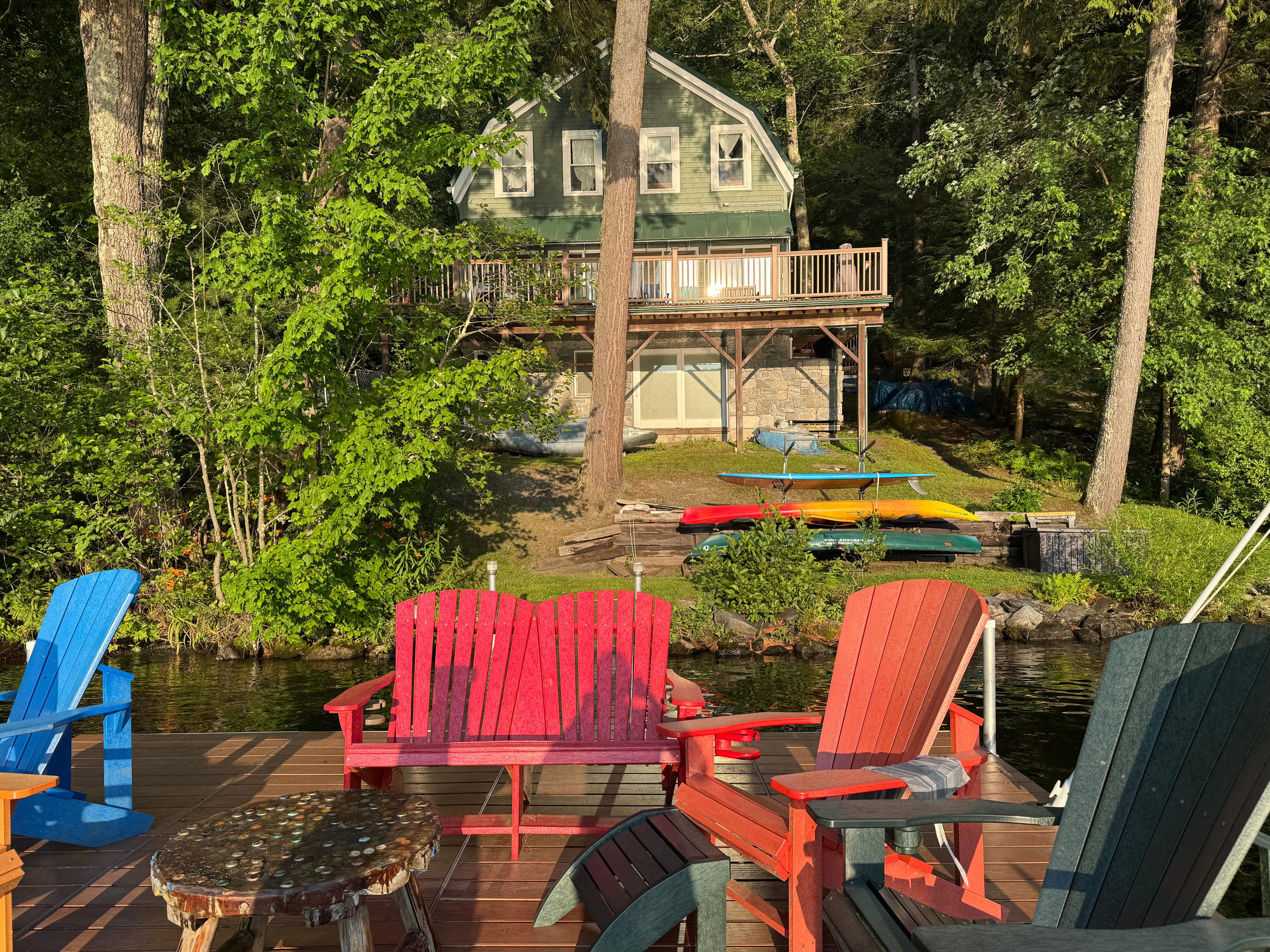 Stroll out to the private dock to spend time out on the water in one of the charming Adirondack chairs. At night, light a fire in one of the 2 chimineas on the deck or dock, and watch the fireflies pass by as you relax.