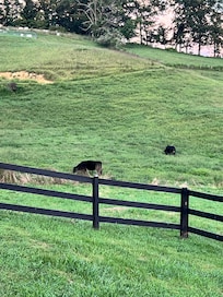Cross Mountain Cottage was recently renovated with comfort and seclusion in mind. The larger bedroom has a queen bed with a luxurious memory foam mattress, fresh linens, and windows overlooking the pasture and mountains. The smaller bedroom is cozy and bright with a twin-over-full bunk bed and a twin trundle. The fully-renovated bathroom is located between the two bedrooms.