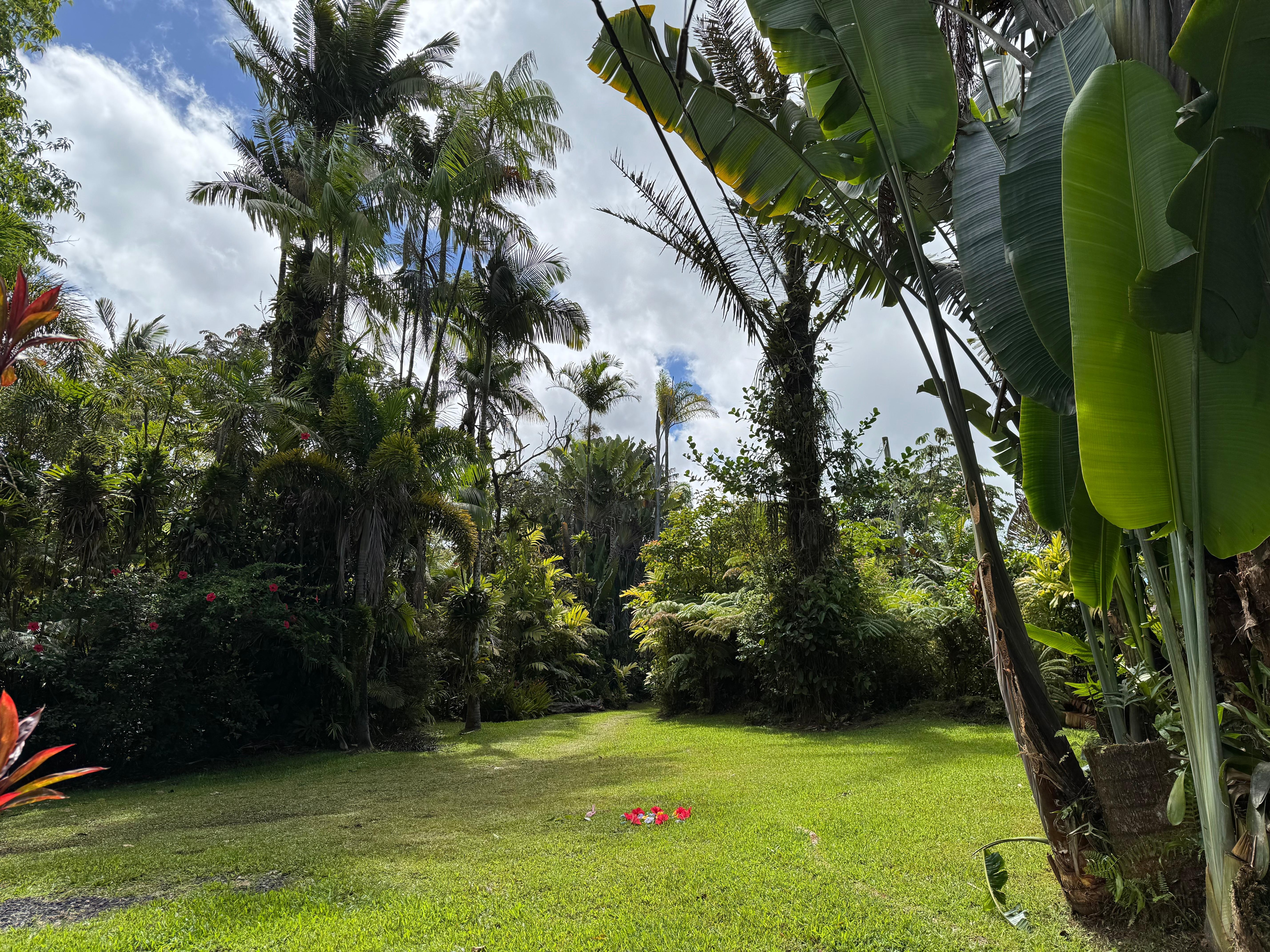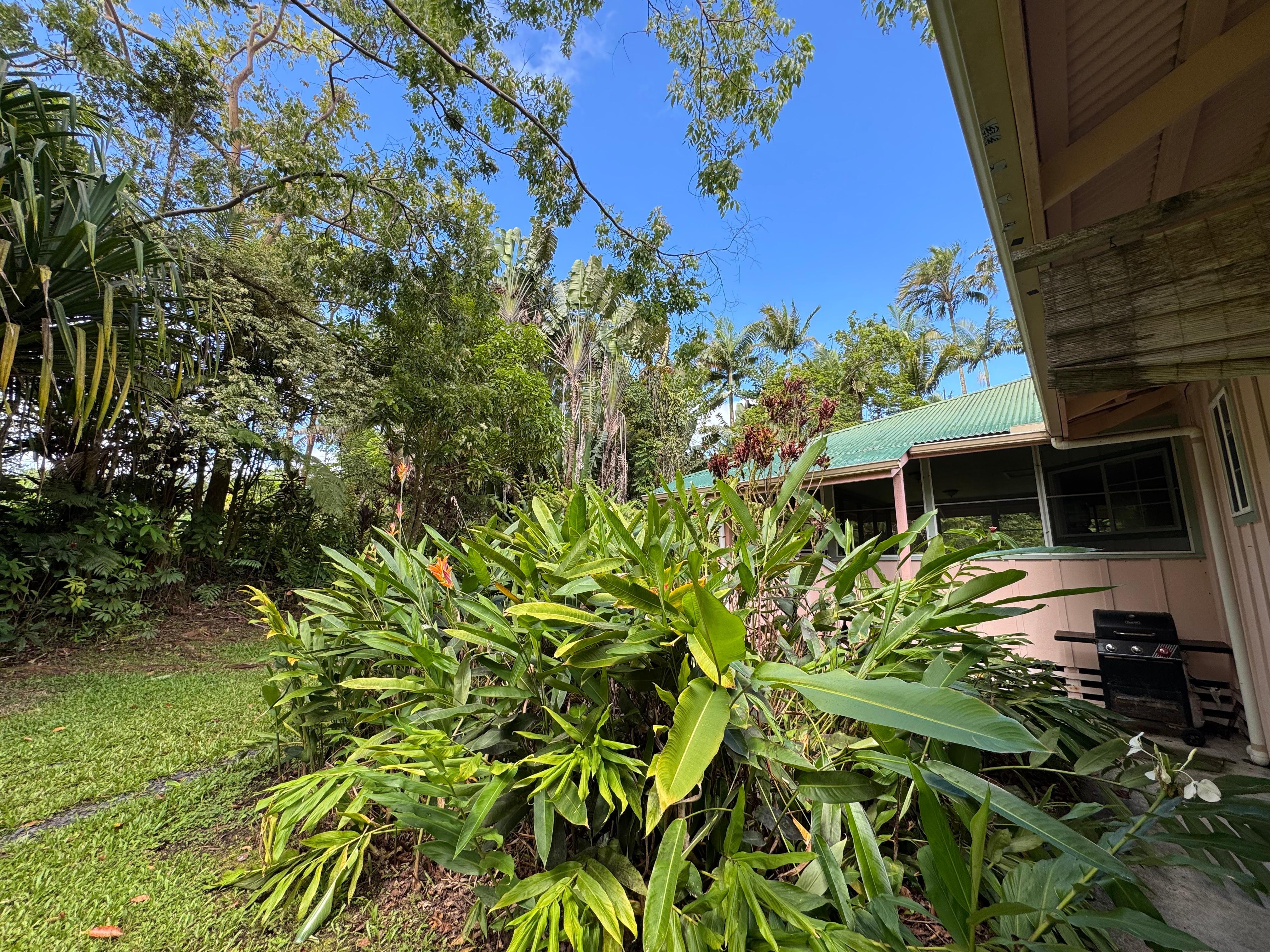 Hale LĂ©zarde est en retrait sur le terrain de la vie privĂ©e dans un magnifique cadre de la forĂȘt tropicale. La isolĂ©e une acre de terrain est amĂ©nagĂ© avec des fougĂšres, arbres Hapu'u Ohia et de palmiers et de plantes Ă fleurs abondantes, notamment anthurium, de gardĂ©nia et de gingembre. Il y a des orangers, des bananiers et des avocats, ainsi que des cafĂ©iers et des ananas que nous vous invitons Ă savourer en saison. Vous saurez que vous ĂȘtes Ă HawaĂŻ la minute oĂč vous marchez sur cette propriĂ©tĂ©!