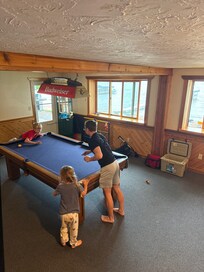 Nice home.  Jacob was great to work with.  Even got our teenagers some kayaks to use!  A few things to note.  Water is VERY shallow. The end of the dock was barely 3 feet deep. Unfortunately, this didn’t allow the kids to fish off the dock. Also, if you have a larger boat, beware as it’s very hard to bring it into the dock. We had a 19 foot boat and had to trim up the motor significantly to get it in. The dock is very good and sturdy.The house had plenty of space. Great kitchen space. Great refrigerator/freezer space. The grill was in great condition. The only bedroom that is air-conditioned is in the upstairs as well as the loft itself. The two basement bedrooms are not air conditioned.The beach was gorgeous and well maintained! Plenty of outdoor seating for everyone. We got rained out most of the week so the pool table was perfect.  There is only one shower in the house. Because of the rainy/stormy weather, we were unable to utilize the outdoor shower.  But had we been able to spend more time on the beach, I think it would’ve been great.  Also loved that we could bring our fur-babies!!!Thanks for allowing us to stay in your beautiful cabin!