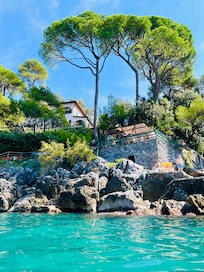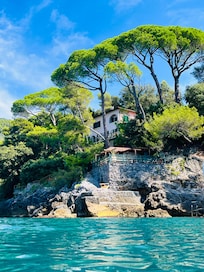 The direct access to the sea in a stretch of coastline not accessible to the public, the private beach, the complete tranquility and remoteness from roads and cars, the stunning views of the Gulf of Poets.