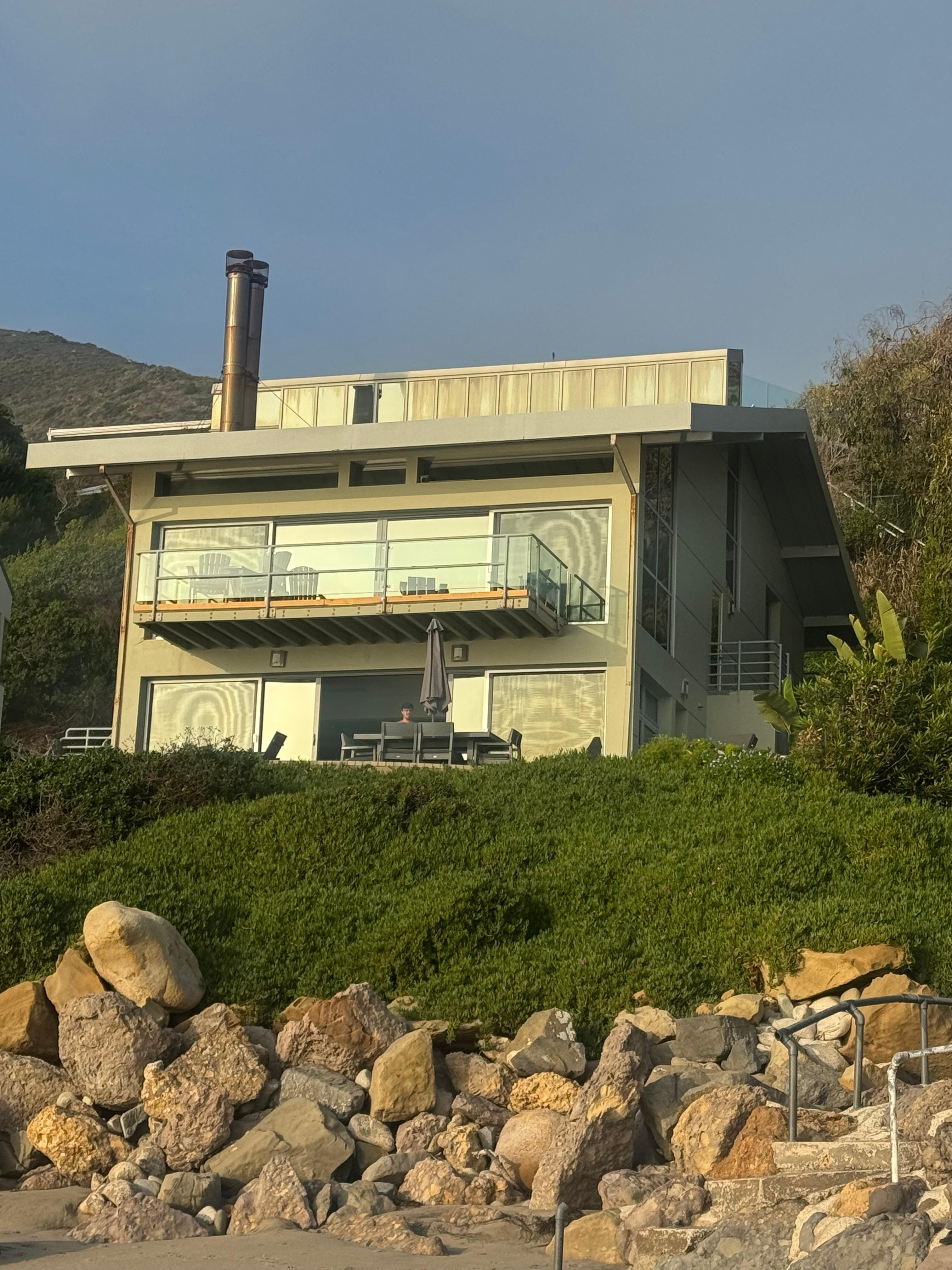 5 star location! Incredible views! I've stayed on the beach in Malibu for years. This house is on a private road away from PCH - so quiet! And further north from the crowds, easier to relax, yet only 7 minutes from 2 grocery stores, restaurants, coffee shops, and Zuma. Sunsets, star gazing, stunning beach and only a few dozen homes nearby. Maybe saw 2-3 people per day walking on the beach.Paul has the place FULLY equipped - lots of beach towels, beach chairs, etc. Kitchen has everything and the grill was perfect! Great water pressure and hot! There are two bedrooms, living/dining/kitchen upstairs. There is a separate master suite, also with a kitchen, downstairs. To access each level, you go outside up a few stairs on either end of the house. Not a big deal. Patio was amazing, upstairs deck was perfect at sunsets, and the beach was very easily accessible and dry about 3/4 of the tide cycle - also rare in Malibu. Two car garage for small SUV's/mid sized sedans. Larger cars have secure parking right inside the gated entrance up a steep hill, but only 50-100 yards away.Really, can't think of much I'd change. Maybe a few cosmetic updates, but that is minor. WiFi was great! Cell service was occasionally spotty, typical for western Malibu. This is a terrific place and Paul was an attentive, available host - even dropped in to check on us after we arrived. I wouldn't hesitate to go again - it is rarified air around there!