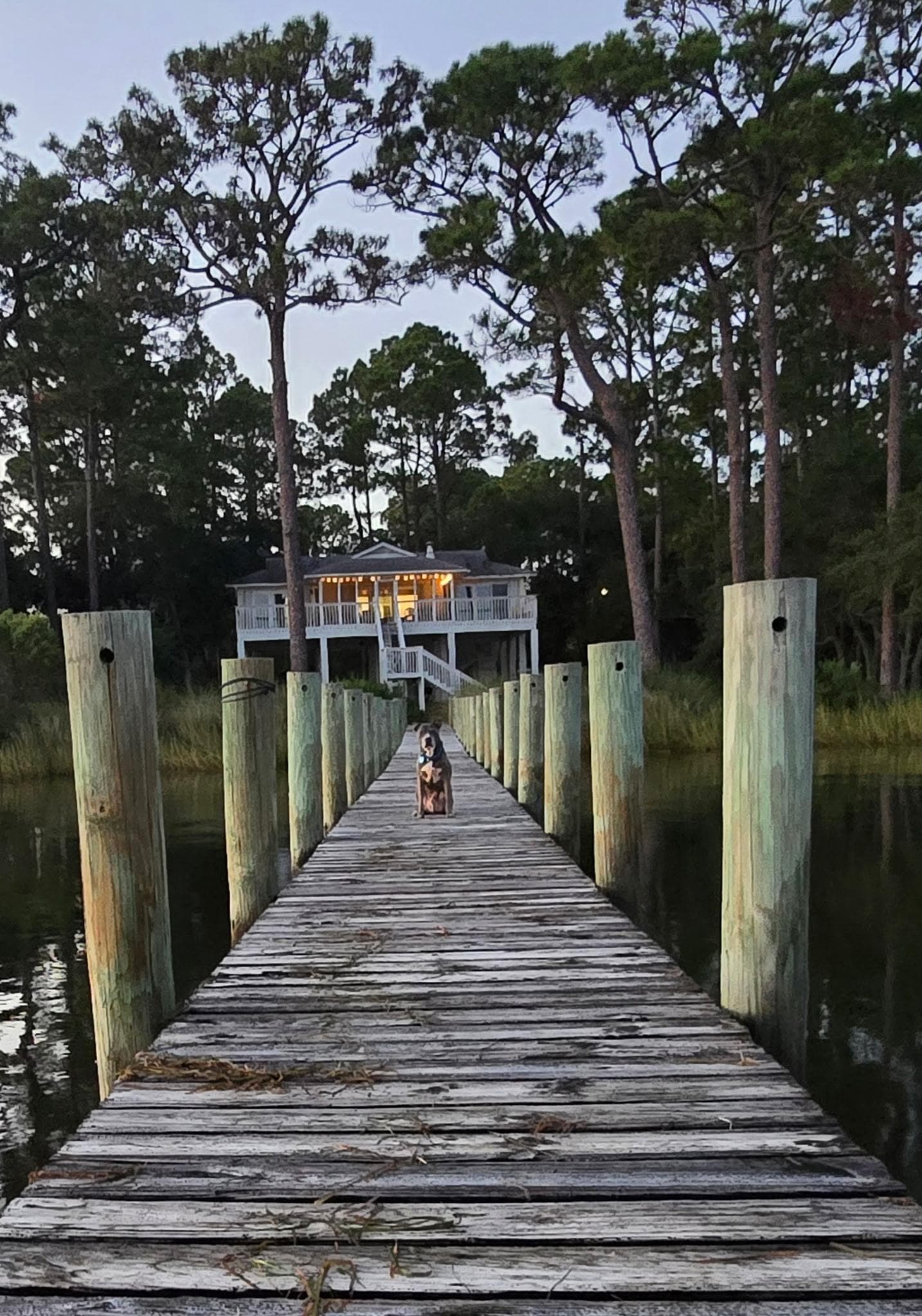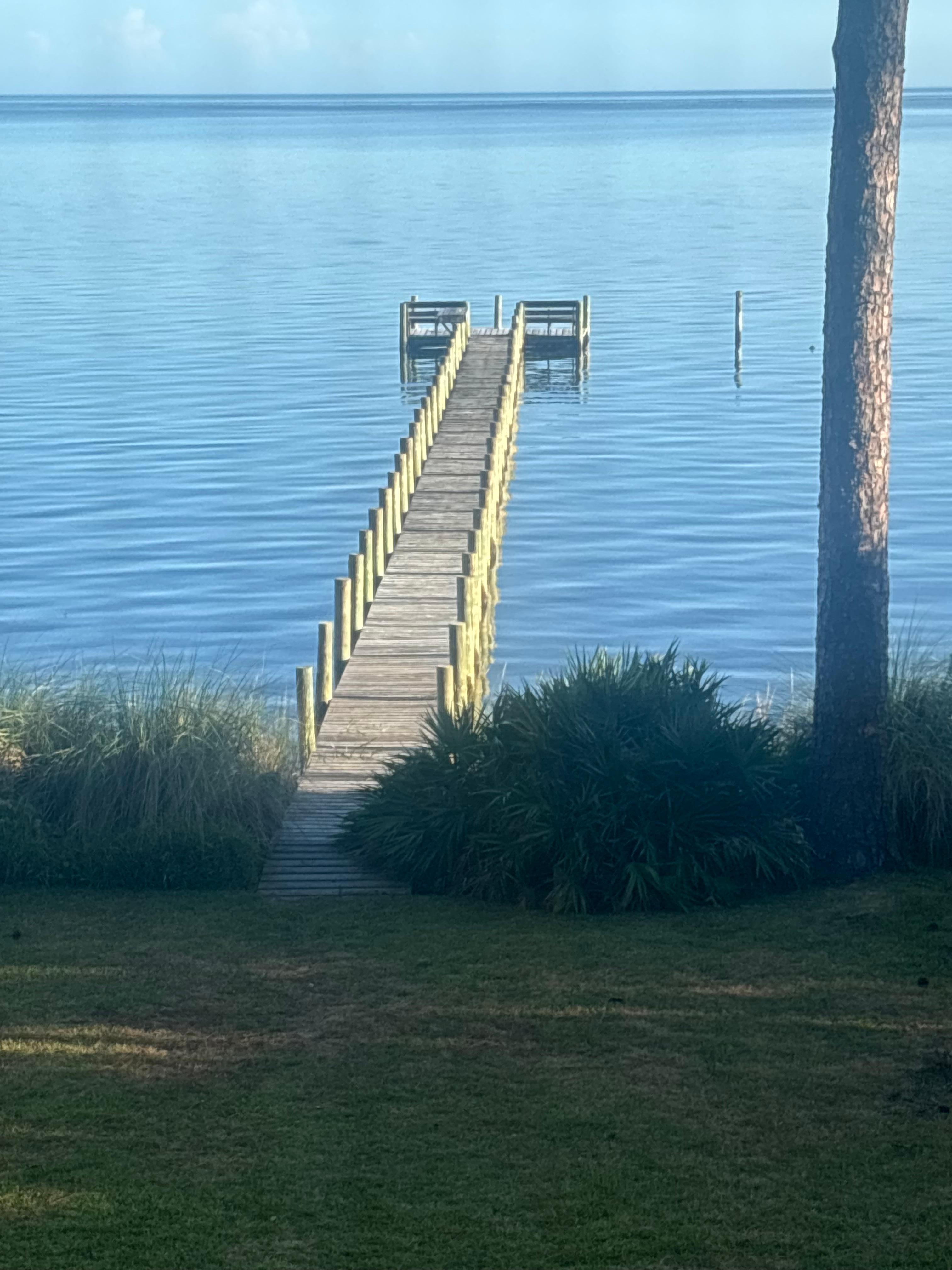 New listing! Casa de Carrabelle is a 2BR/2BA home located in Lanark, surrounded by sand oaks and pines, over looking the bay. Enjoy fishing from your very own, private dock or bring your own boat and leave it moored! The public boat ramp is less than a mile away. The home is adorned in coastal decor and has popular amenities such as a swing below the house for sunset watching, a wine cooler, & charcoal BBQ grill. The kitchen is fully stocked including a coffee maker, coffee cups, wine glasses, dishwasher, everyday dishes or a fancier set if you wish. Both bedrooms feature a queen size bed and balcony access. The master has an en-suite bathroom with walk-in-shower. The second bathroom features a tub/shower combo. There is also a full size air mattress for extra sleeping space. The screened in center deck has a ceiling fan and seating for relaxing, as well as access to both side decks. This home is pet friendly, with a 2 pet max. and a non-refundable $100 pet fee. Pets must be approved by owner.