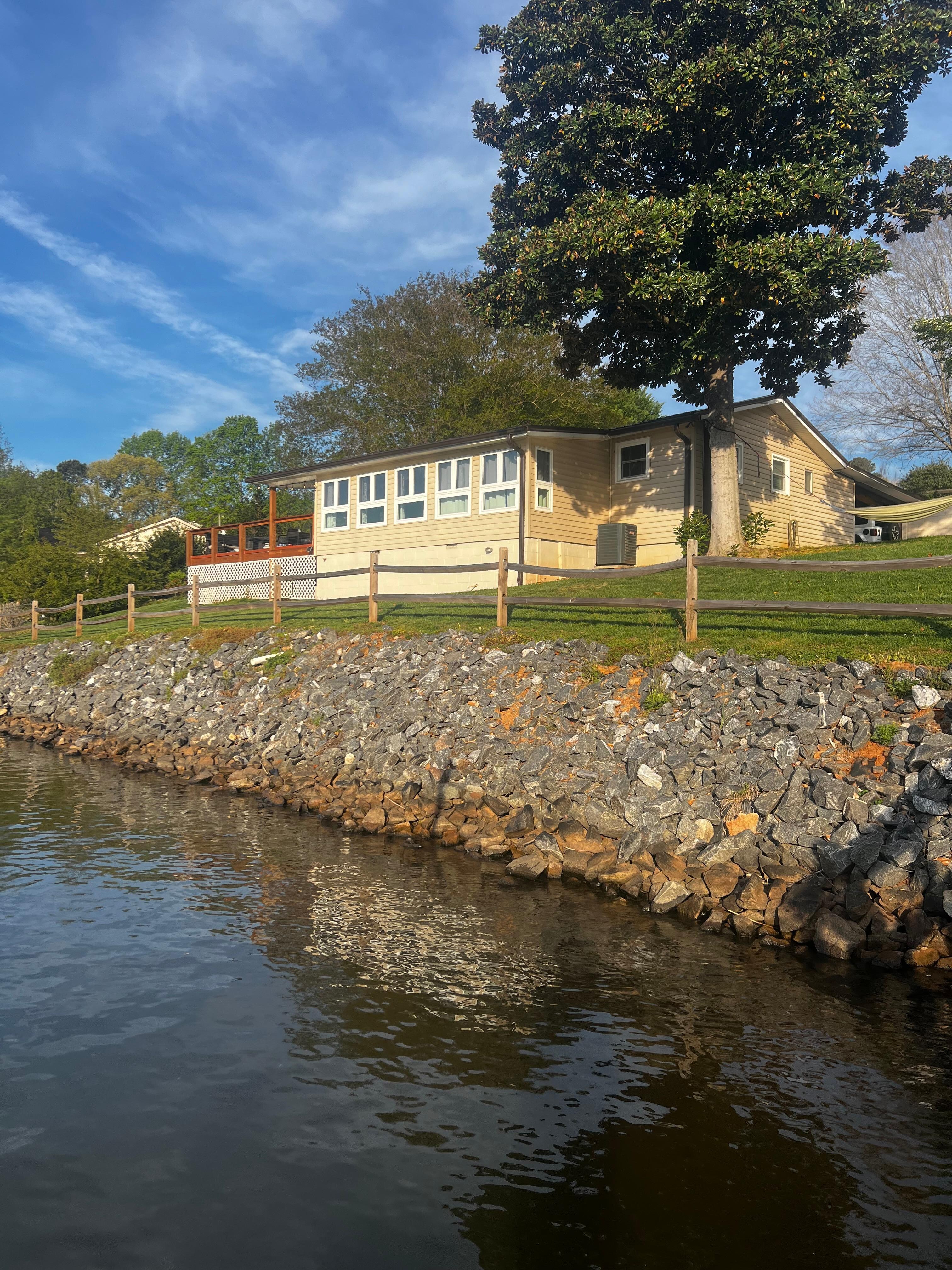 Lake front home 25 ft from water w/ private dock, firepits, kayaks & paddle boat