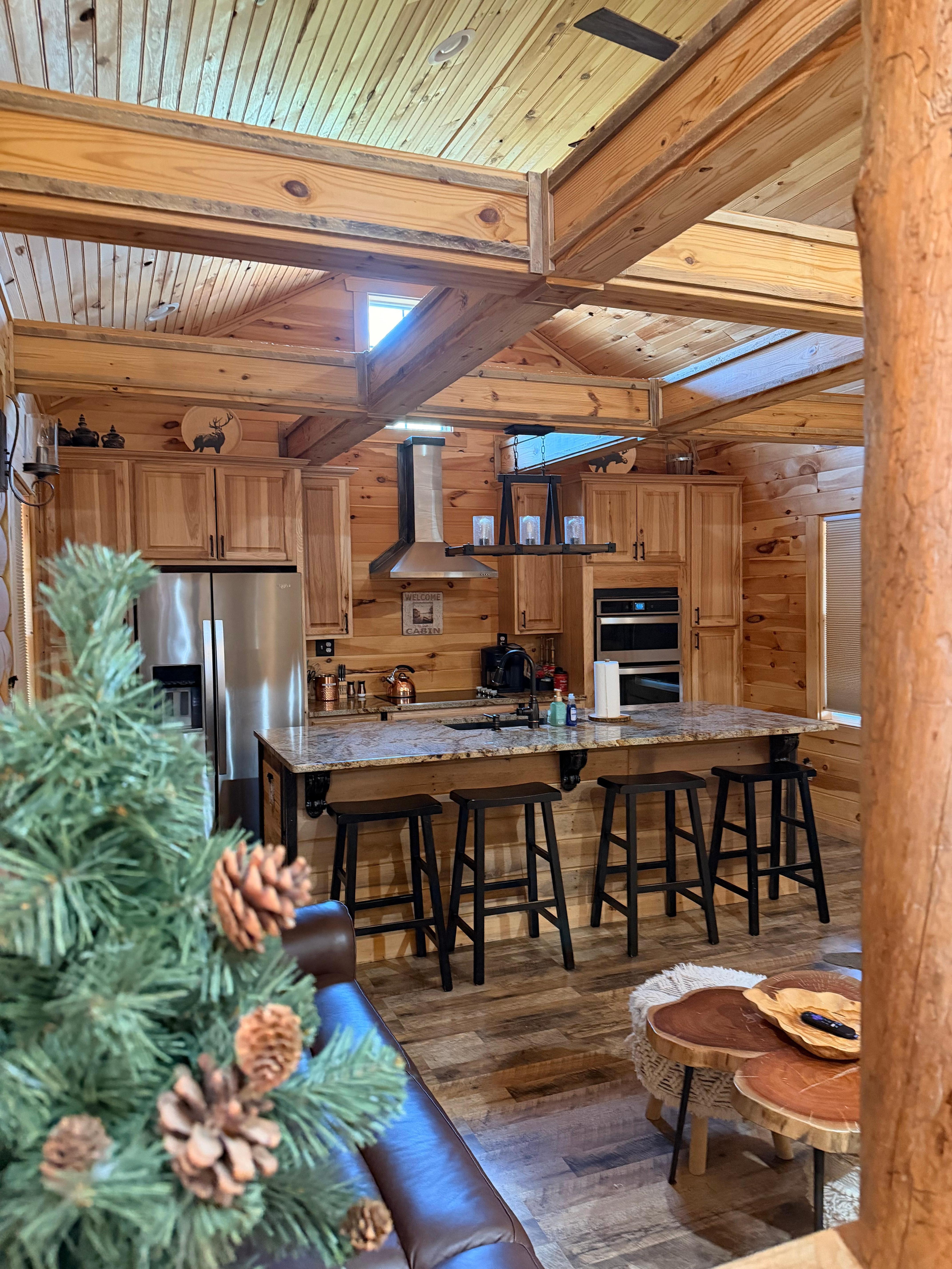 Blue Sky Cabin is one of the newest, most beautiful cabins near Red River Gorge. The living space is open and inviting. The cabin is ideally situated 20 minutes from the Red River Gorge hiking, climbing, and recreational attractions. Beautiful décor, a custom shower, and a gourmet kitchen are just the beginning. Enjoy the covered deck with hot tub & Charcoal grill. Prepare gourmet meals in the fully equipped kitchen. Full-size washer/dryer.