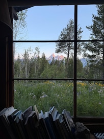 Our cabin has a spectacular location, directly in front of the Grand Teton peaks. A rare National Park in-holding, the cabin is on the border of Grand Teton National Park and Bridger-Teton National Forest, looking out over the Park and offering superb hiking out the back door.