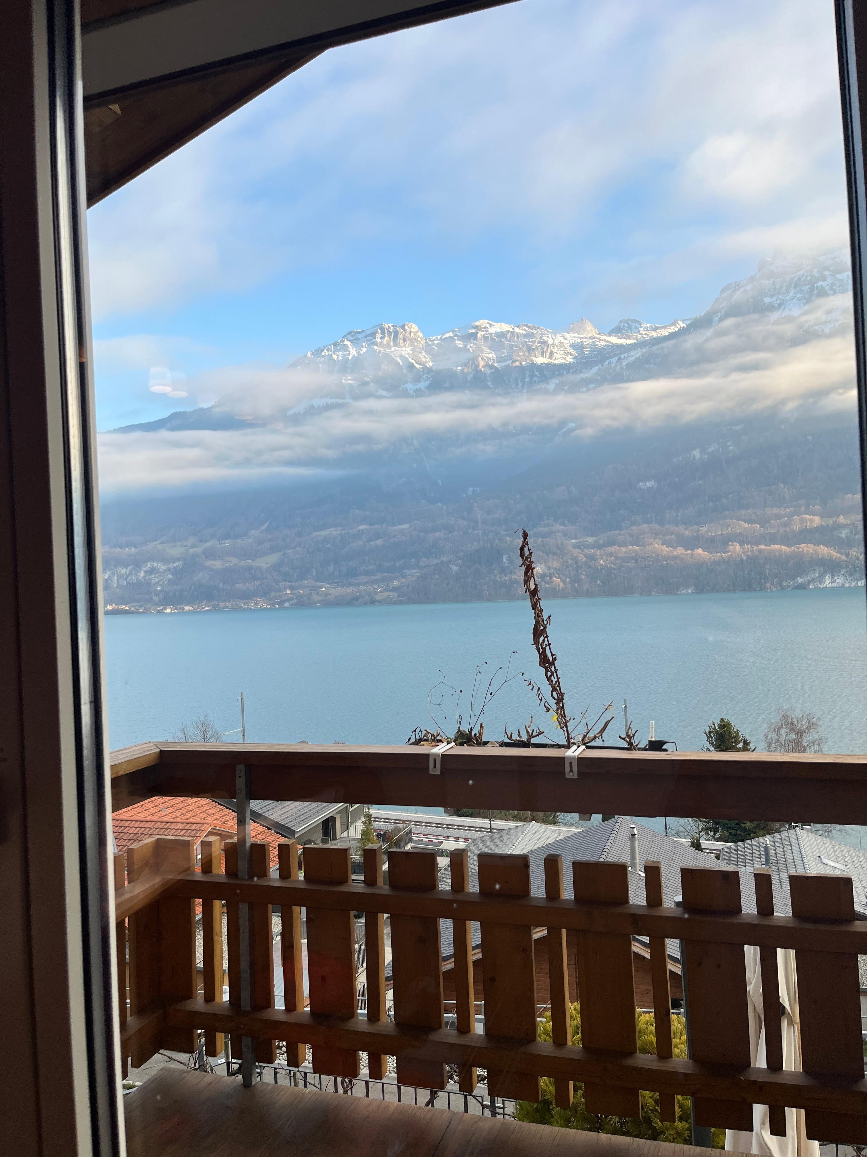 The chalet has a 180 degree view of the mountains and the beautiful lake Brienz.