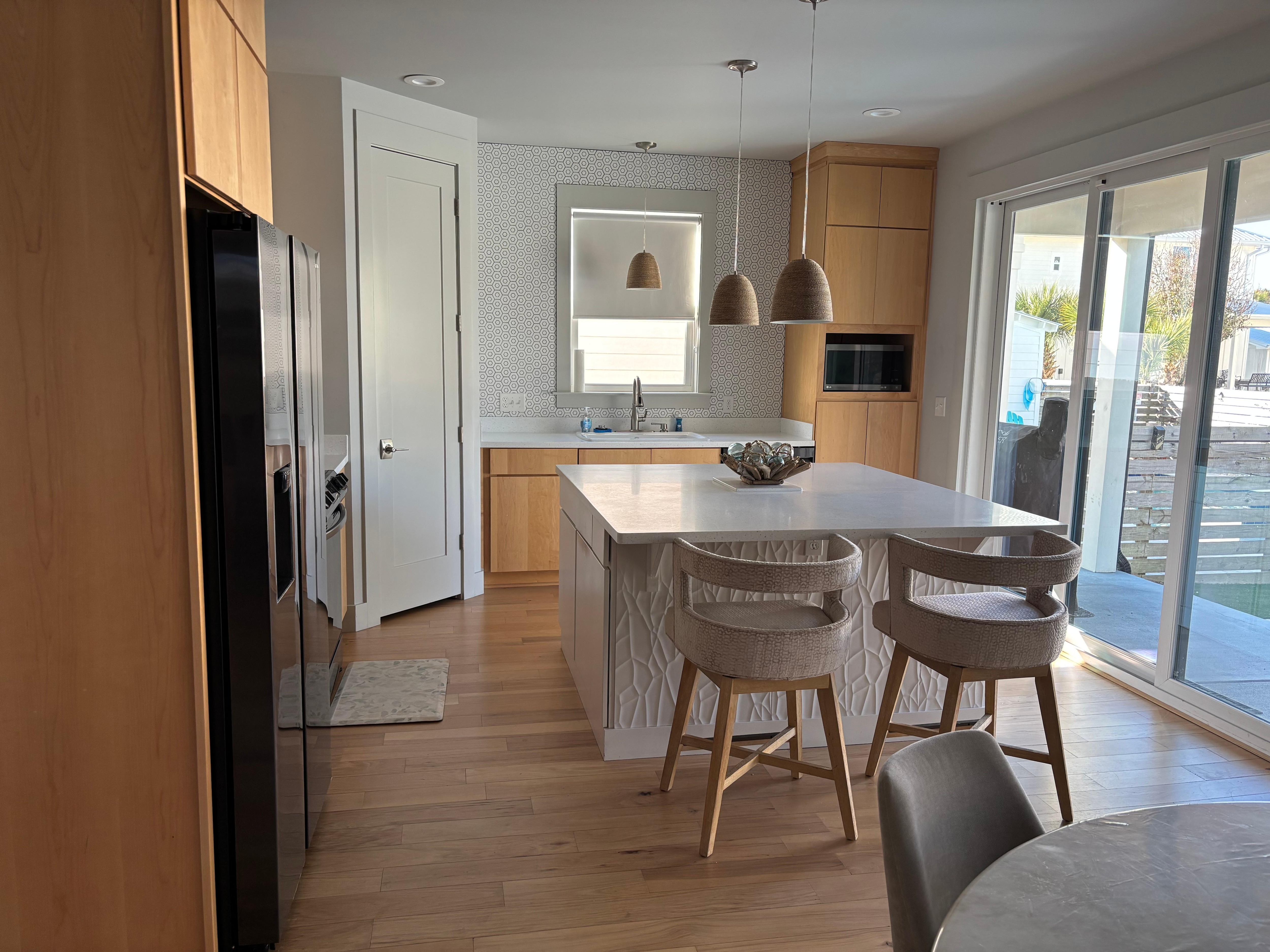 This stunning 3-bedroom, 3-bathroom beach house is a modern masterpiece designed for the ultimate Florida lifestyle. Just a short walk from the beach, this two-story home invites you to embrace outdoor living with multiple decks, porches, and your very own private pool. Unwind on the expansive rooftop deck with sweeping views or relax by the sparkling pool nestled within a stone-paved terrace and wooden sun deck. A beautifully landscaped yard, screened lanai, and open porch with a smoker grill offer endless options for outdoor entertaining and relaxation. Inside, the home is filled with natural light and contemporary charm. The open living area features sleek leather seating surrounding a stylish media wall. The chef’s kitchen is both elegant and functional, boasting abundant wood cabinetry, gleaming white quartz countertops, a central island bar, stainless steel appliances, and a walk-in pantry. This home comfortably sleeps up to 7 guests with a luxurious king bed in the primary suite, a queen bed plus a twin sleeper sofa in the second suite, and a cozy queen bed in the guest room. An attached garage offers storage for all your beach and pool essentials, with additional parking available in the driveway. Start making unforgettable memories at Talulah Sunrise – your perfect beachside escape awaits.
