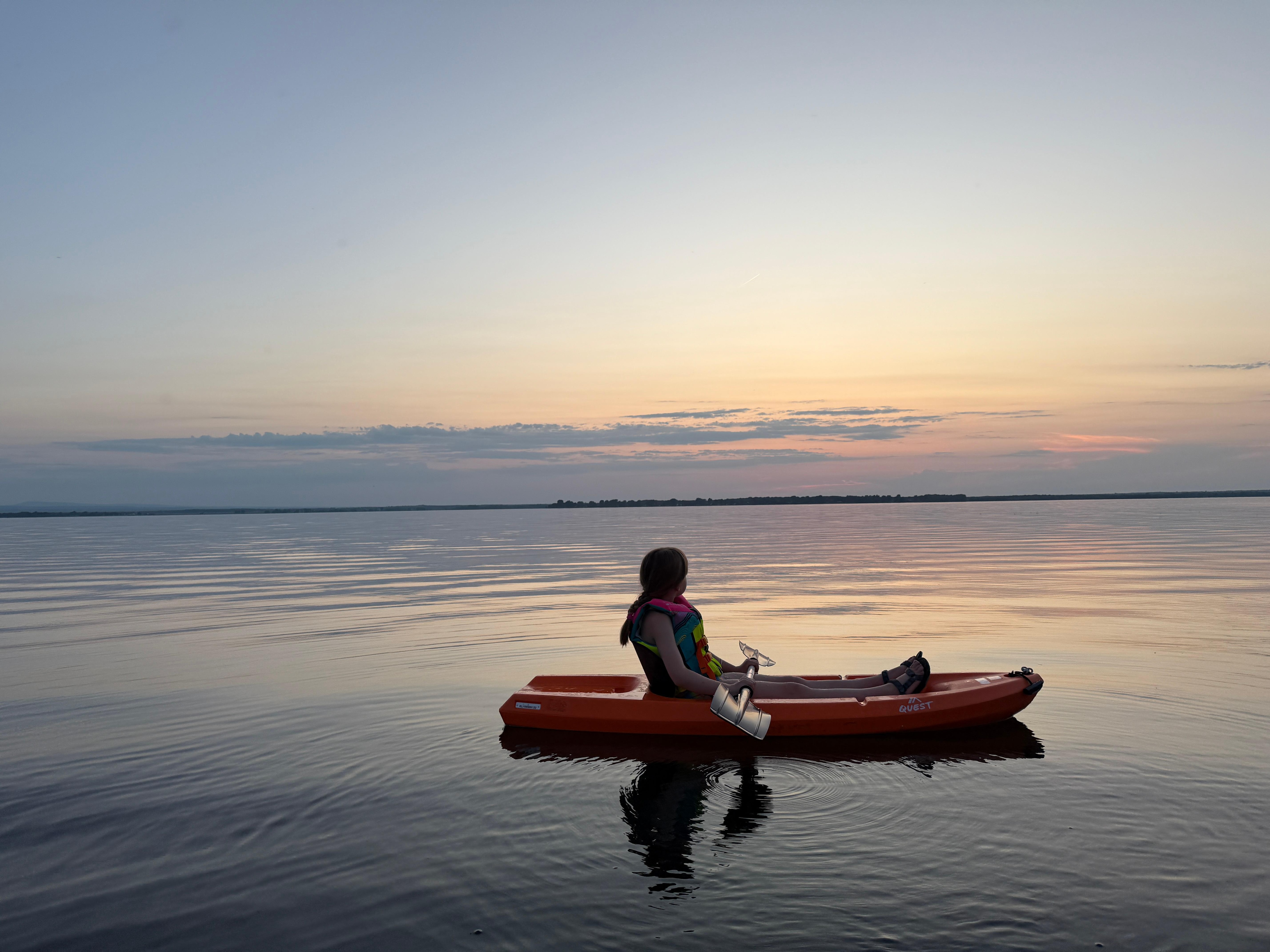 We're located with a southwest view on Lake Champlain. The sunsets are killer. We have a dock that reaches out about 60 feet onto the lake with a small platform to chill out with a couple of chairs at the end. The water is usually very clear in our spot and our kids and their friends love swimming. The water depth is usually about 3-4 feet deep in the early summer, but gets shallower as the summer wears on. The further out you go, the deeper the water gets, but it doesn't drop off until about 100 yards out.