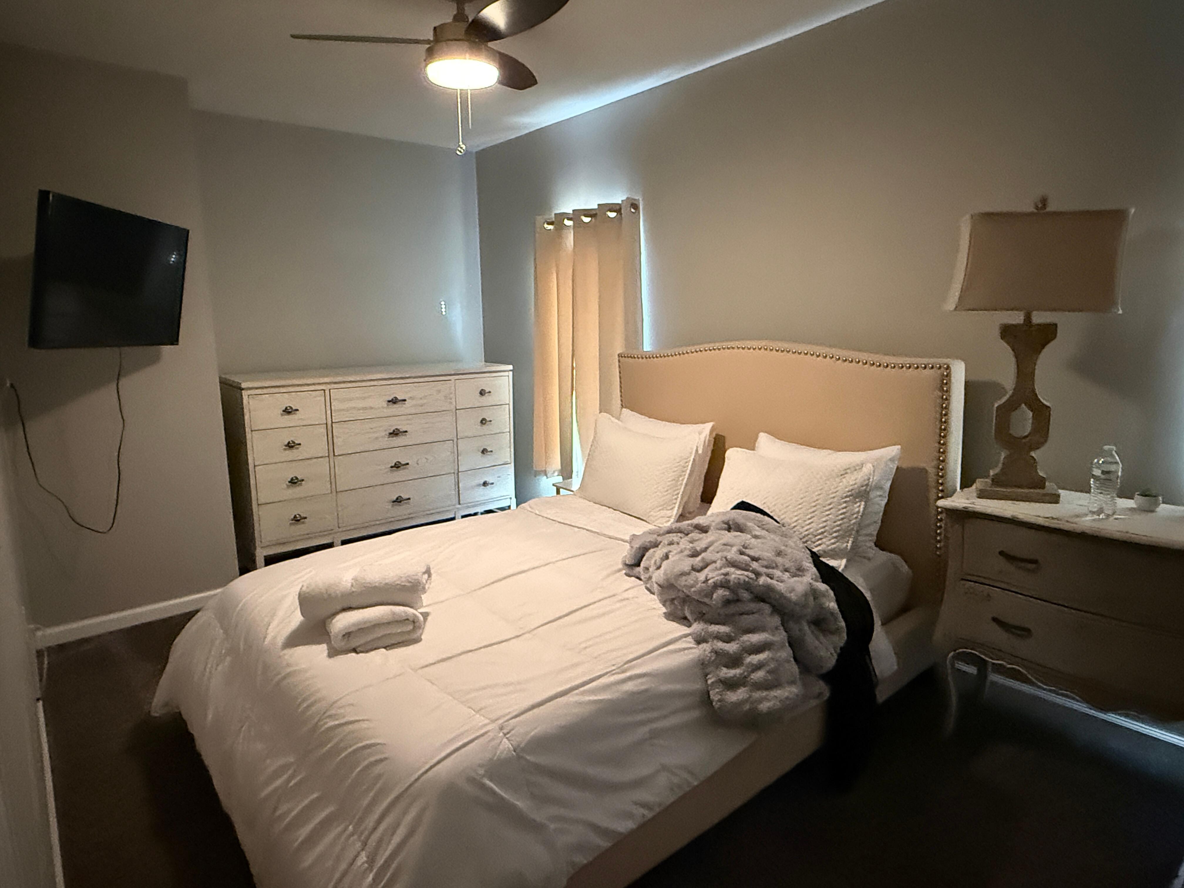 When it's time to unwind, the bedrooms are outfitted with plush bedding and room-darkening shades to ensure a restful night’s sleep. Start your mornings or end your evenings out on the backyard patio, where you can relax on comfortable seating and enjoy the peaceful surroundings of this quiet, centrally located neighborhood. Whether you're in town for business, medical care, or a city getaway, The Southern Nook offers a polished and peaceful place to land.