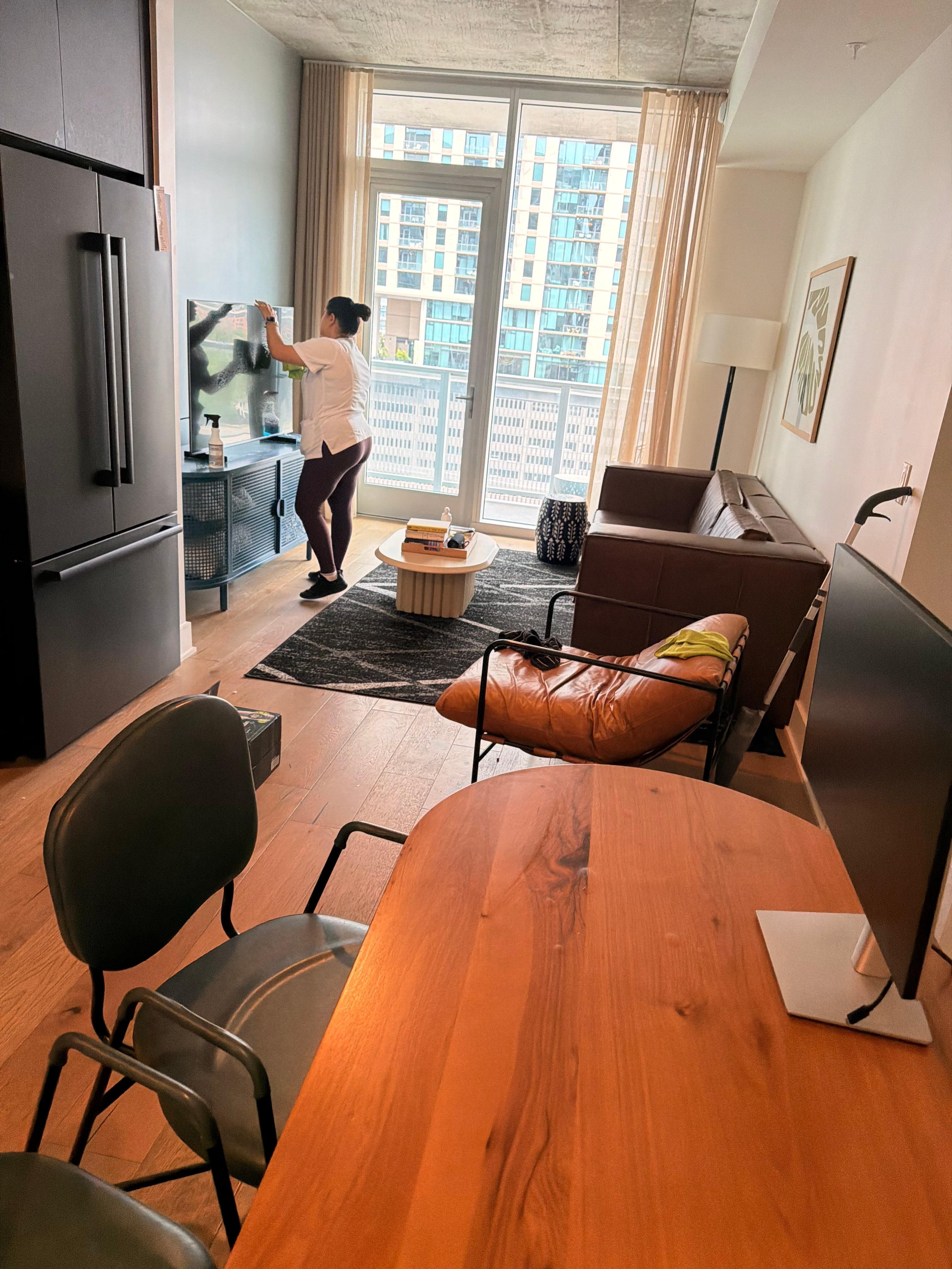 Step inside to discover a thoughtfully curated space featuring floor to ceiling windows that flood the condo with natural light and showcase sweeping downtown views. The open concept living area is outfitted with upscale furnishings, a plush sofa, and a large smart TV ideal for relaxing after a day exploring the city or unwinding before a night out. High speed Wi-Fi and a dedicated workspace make this condo equally suited for remote work or business travel.