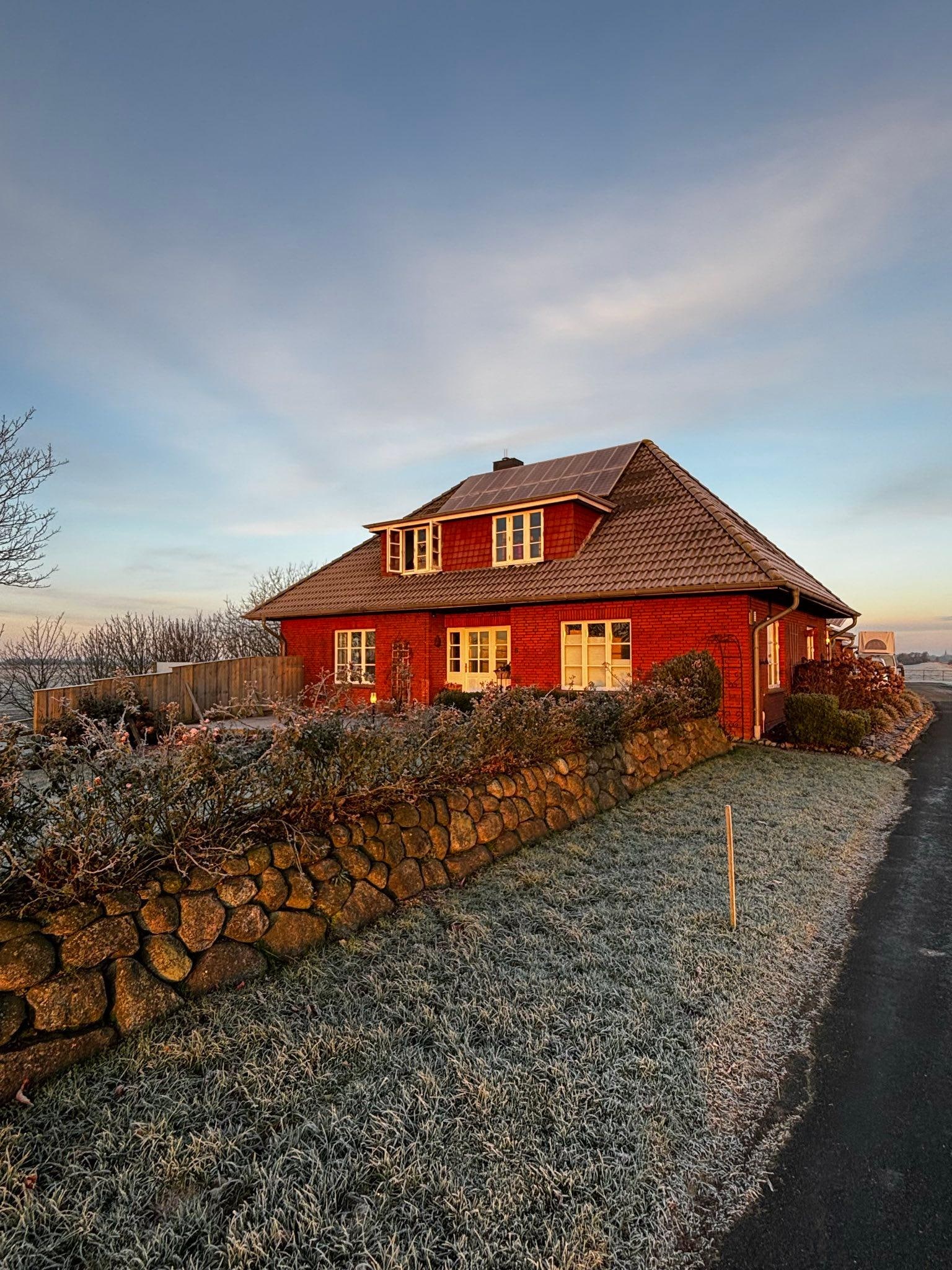 Approximately 250m² of living space with 3500 meters of land. No holiday home in the classic sense. The house invites you to a relaxing holiday in any weather. We offer 4 bedrooms, 2 bathrooms, a large kitchen and a dining and living room. Enough space to relax on a day with rain and storm. The orientation of the house follows the course of the sun. The kitchen offers space for all residents to have breakfast together and is a nice place to start the day due to the east orientation and the appropriate view. The house entrance is in the south and from the living room you go to a large wind-protected veranda with a wonderful view to the west. The kitchen is fully equipped. The bathrooms have underfloor heating. A wellness area (approx. 6.5 x 5.25 square meters) with a sauna (2.30 x 1.96 square meters) plus fitness equipment (Finnlo-Speed bike and elliptical trainer (Kettler)) has been set up since 01.12.2012 , In the adjoining barn building there is a leisure room with table tennis, football table and pool table.