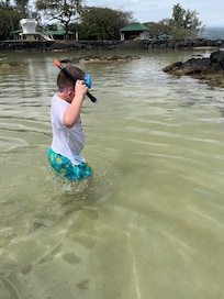 There are large yards in front and behind the house with fruit trees. There is ample onsite parking and a security fence in front for your privacy. This house is in the unique area of Hilo with walking beach access for swimming and snorkeling. The location provides cool ocean breezes from the front and mountain breezes from the back of the house.