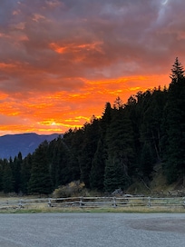 Fire pit for smores, creek flowing by, barbecue grill, indoor/outdoor furniture for everyone's comfort. The horses and dogs love attention and treats.