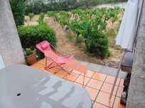 Séjour de 13 jours à 4 gite grenache.Les atouts du gite sont le calme, la piscine et la sympathie des propriétaires. Le gite qui prend de l'âge nécessite des rafraîchissements et de l'entretien surtout au niveau de la cuisine , piscine et du bbq. La cuisine est exiguë, 2 personnes peuvent difficilement s'y activer.Le frigo avec congélateur s'ouvre vers le mur limitant encore l'accessibilité. Une zone cuisson est HS et il manque un peu de matériel comme des grands verres et des grands bols... ( le gite est annoncé pouvoir acceillir 5 P). Le gite est plus dimensionné pour 2 ou 3 P que pour 4 du moins si on y reste plusieurs jours. On s'y est sentis à l'étroit. Il n'y a aucune isolation sonore entre les 2 chambres. Les conversation sont partagées. La clim est efficace, 1 dans le hall d'entrée et 1 dans la piece principale. Le bbq n'est pas patique, à l'ancienne, avec grille rouillée. Une plancha électrique serait plus indiquée (nous en avons d'ailleurs acheté 1). La terrasse est petite mais protégée du soleil le matin et le soir, elle donne sur une parcelle de vigne entourée de hauts murs, la vue est donc limitée mais le site est ainsi protégé. Il y a des volets à ttes les fenêtres. Pediluve de la piscine HS, la douche du logement était bouchée à notre arrivée, les proprietaires, reactifs, sont rapidement intervenus. Le logement est propre, les abords piscine sont nettoyés regulierement et la literie correcte. Le prix est à notre sens trop élevé vu nos précédentes locations.
