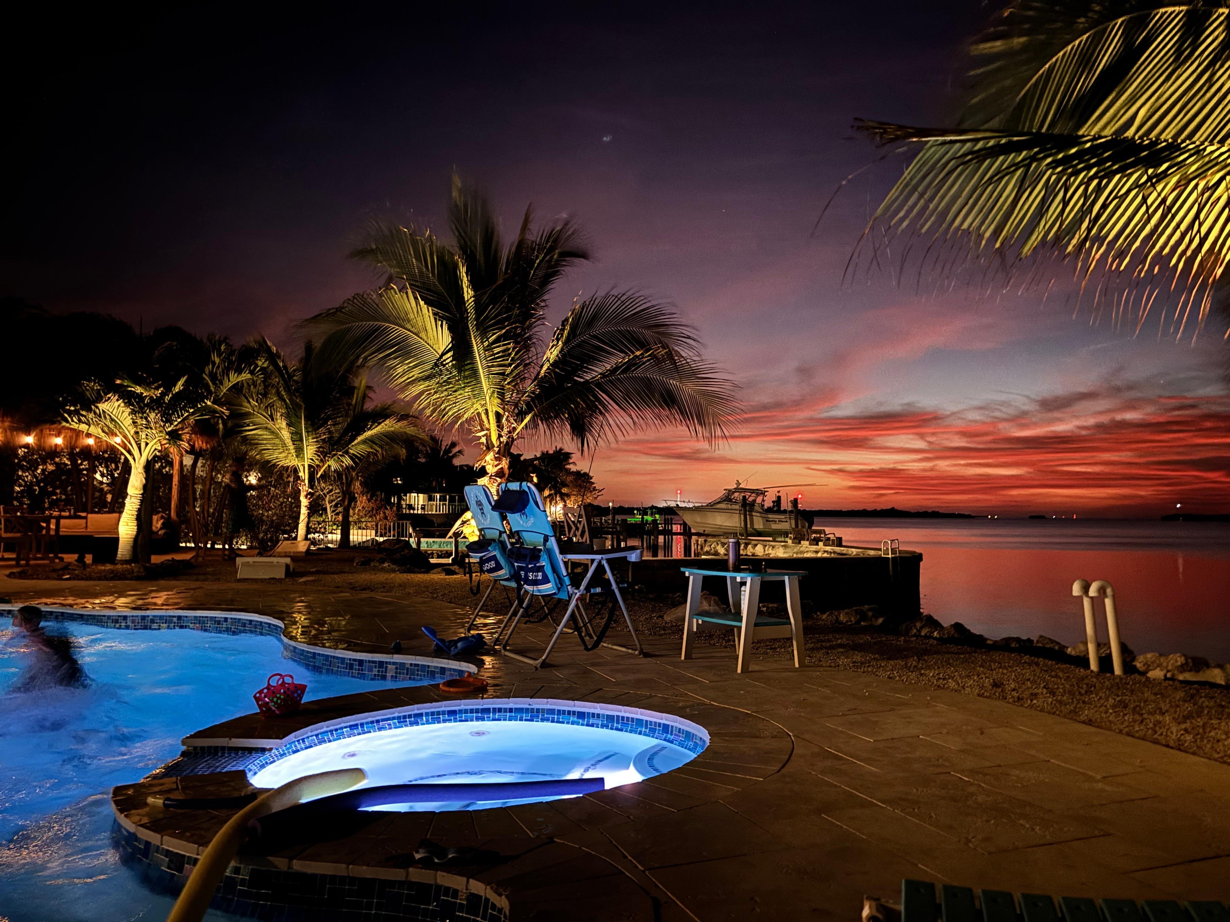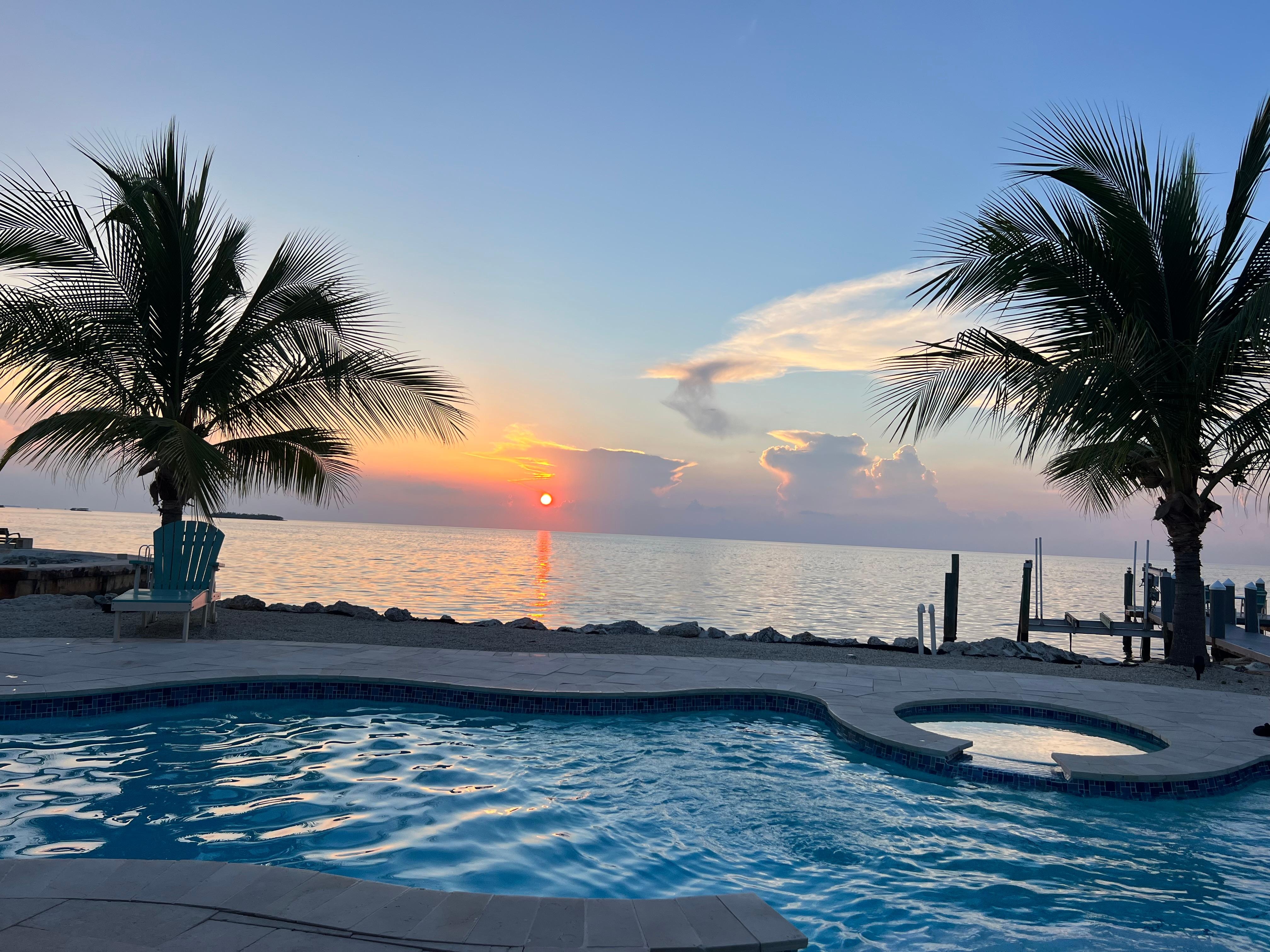 This spacious property sits directly on the Gulf. Most rooms in the house has views of the Ocean. The deep water dock allows you to bring and dock your own boat. All the rooms are extra spacious and provide a restful retreat after your busy day. Just imagine waking up making coffee in your own room and sitting outside your deck to the beautiful Gulf Waters, a dream come true. It's Paradise . Slip away into breathtaking views, gulf breezes and access to swimming right off our deck and dock. Explore our crystal clear waters. Part of the experience includes Kayaking (included 2 doubles with life vests) right from our steps. Relax in the Sun, use the 10 foot Jacuzzi Spa, and wait for the extraordinary sunsets that change by the minute. Beauty and relaxation surround you without ever leaving the property. However, your vacation will most certainly be enhanced by taking in some of the most notable beaches, restaurants, and shopping. We personally love the Old Seven Mile bridge that offers, walking and biking with unforgettable views. Sombrero Reef is beautiful for snorkeling or swimming and its about 3 miles off-shore. There are several other snorkeling diving sites in Marathon. Marathon has two beaches. Sombrero beach which is beautiful during the winter months. There is also Cocoplum Beach, which is a natural beach. We recommend a drive to Bahia Honda State Park where there are beaches on both the Ocean and Gulf sides. There are many different areas you can go to from our property. In addition, there is a great community park with tennis courts, basketball/hockey courts, skateboarding, soccer fields. baseball fields, shuffleboard courts, boccie ball, picnic areas etc. Marathon is also full of great restaurants and bars, a movie theater and a live theater with performances throughout the year. As a side note, some of the restaurants will be an experience in itself. Great food and ambiance that provide great entertainment and flavors for you palate. Home features high Speed WIFI, Living Area with its own TV, Blue Ray player and Sound System for both indoor and outdoor listening pleasure. A Comfortable sofa with a lounge chair, a reclining chair and a chair with an ottoman. The Dinning Room sits 8-10 Next to the dinning room and kitchen is the bar high Breakfast table with 4 stools. The Kitchen features glass tiles, stainless steel refrigerator, dishwasher and double oven gas stove and corian counters. The kitchen is fully stocked with dishes, pans and all cooking accouterments necessary for a cooking feast. The home also features a full size washer and dryer, an Iron and Ironing board. The Bedrooms: Master Suite Number 1- The Periwinkle Room, features, a King size bed, a window seat and two comfy chairs for looking out to the beautiful gulf. It has its own coffee maker, refrigerator, television and blow-dryer. A custom made walk-in-closet and its own en-suite bathroom with double vanity sinks and a shower. It also has its own deck outside the double doors. This master suite is also adjacent to the outdoor screened Porch with outdoor dinning, seating and the Spa. Master Suite Number 2-Sea Foam Room, features a King Size Bed, a Dresser, Two closets, a Futon Sofa, an en-suite bathroom with a tub/shower combination, a coffee maker, TV and Blow dryer, a linen closet and its own deck overlooking the Gulf. The Key-lime room, with its own separate entrance off the main home hallway, features a Queen size bed, a Futon Sofa, and an en-suite door to a shared bathroom, a large closet, a desk/vanity area with a lighted mirror, a blow-dryer(in hallway closet) and a TV. This room also features Gulf views through Sliding Glass doors shared with the Ocean Blue Room, the sliding doors can be tucked into the wall for an open feel or can be locked for privacy,It also features privacy and sound barrier curtains. The Ocean Blue room, has a separate entrance through the living area of the home. It features Captains Beds, that can be used as two King Beds or 4 Twin Beds. This room has its own TV, Games, Closet, Dresser and floor chairs. The outdoors is where it is at you have swimming access to the clear Gulf Waters. Deep Water Dock, with dockage for your boat. 2 Kayaks which can be launched into the water with the use of ropes. snorkel gear, beach towels, lounge hairs and outdoor adirondack chairs.