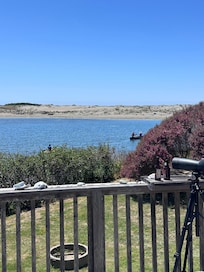 The house is on the river about 500 yards from the Pacific ocean. You can kayak from the front yard either up-river or toward the ocean. Up-river is absolutely breathtaking. The estuary is a Marine Sanctuary and it is totally protected. It stretches east for several miles and has many side channels and inlets to explore. As you head deeper east into the estuary it transitions from brackish to fresh water. It can often be sunny along the river when it's foggy on the beach, and you can easily find great places to swim and picnic.