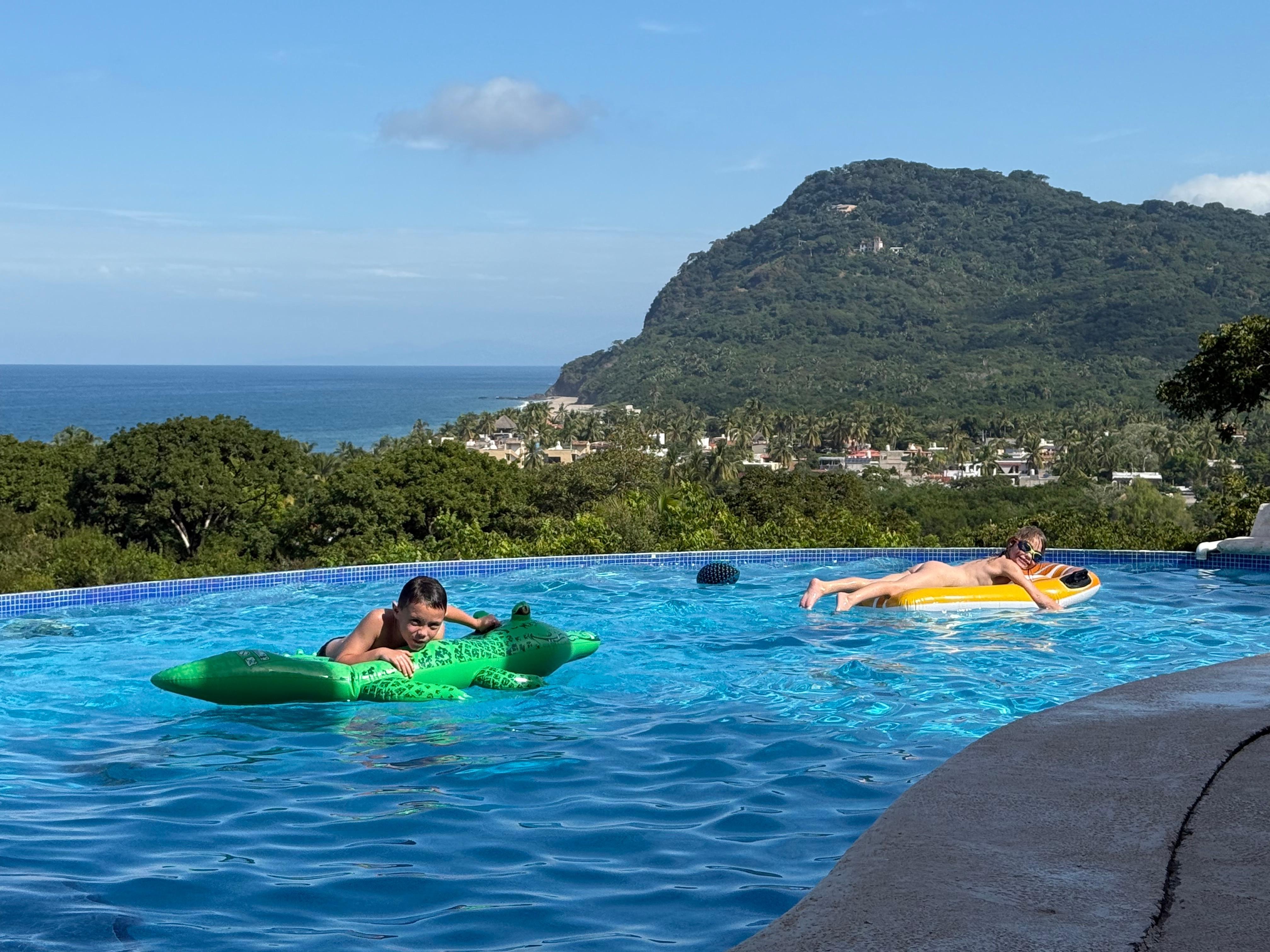 A una cuadra de la hermosa playa de arena blanca bordeada de palmeras y a diez minutos a pie del pueblo amable y tranquilo de Lo de Marcos. Un tesoro de un lugar para abandonar y escapar.