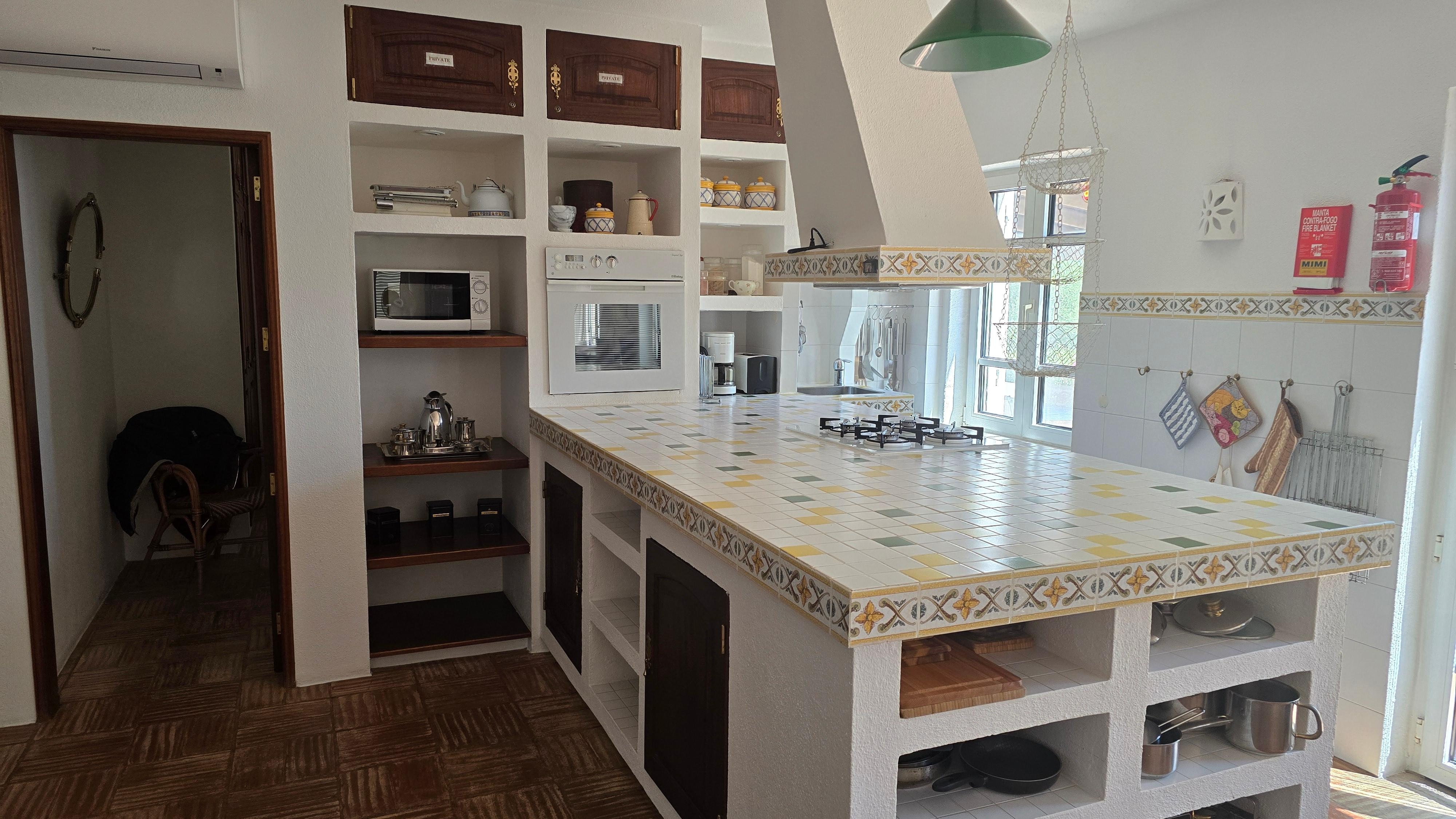 2.000 m² garden, completely fenced, was built in 1992 and 2015 to high modern standards. It is located on a south-facing hillside in a peaceful and private location overlooking the beautiful countryside. It is a safe area, and, in the same time, quite private. It is the last house at the end of a small road, no cars around. The next neighbours are 200-300 meters away, all around ecological area with olive, almond and carob trees.The area is great for short or longer trips. Because of its elevated position the ocean can be seen from the villa. The closest beach at Fuzeta is only about 20 minutes away by car. The villa has all modern comfort and is very well equiped with all needed devices (air conditioning, Hi Fi, dish washer, washing mashine, oven, microwave, etc.). For winter time a modern heating system for all the house is available. It uses solar enery (hot water), wood and/or electricity. By using the chimney in the living area (wood), also hot water for heating and washing is produced. The photovoltaic system produce electricity, but, of course, we are connected to the normal electricity supplier. The living area is very large, including the american kitchen, dinning place, sitting group, studio in 1.st floor, partly very high room, which is very pleasant especially im summer. There are 3 bedrooms - 2 in the ground floor, 1 in the first floor. The windows are equiped with profesional musquitos nets, which, of course, keep also the flies out. All the bedrooms have beds with high quality mattresses, which can be turned around - so that you can have rather hard or memeory effect i.e.rather softer. The bathroom is quite large and has a bathtube, shower place, WC, bidet, washbasin. The second bathroom has a washbasin, WC and bidet. Another shower place with hot and cold water is near the pool. A nice barbeque on the ground floor terrace, tables for minimum 6 persons in and outside, a large well maintained garden and, of course, the pool very suitable also for small children, since it has stairs and is heaten with solar energy even in summer to reach 28-29 °C. In winter the solar energy is normally used to support the heating system in house, and not for the pool. Once a week clean service is included in price (also bed lines and towels change).