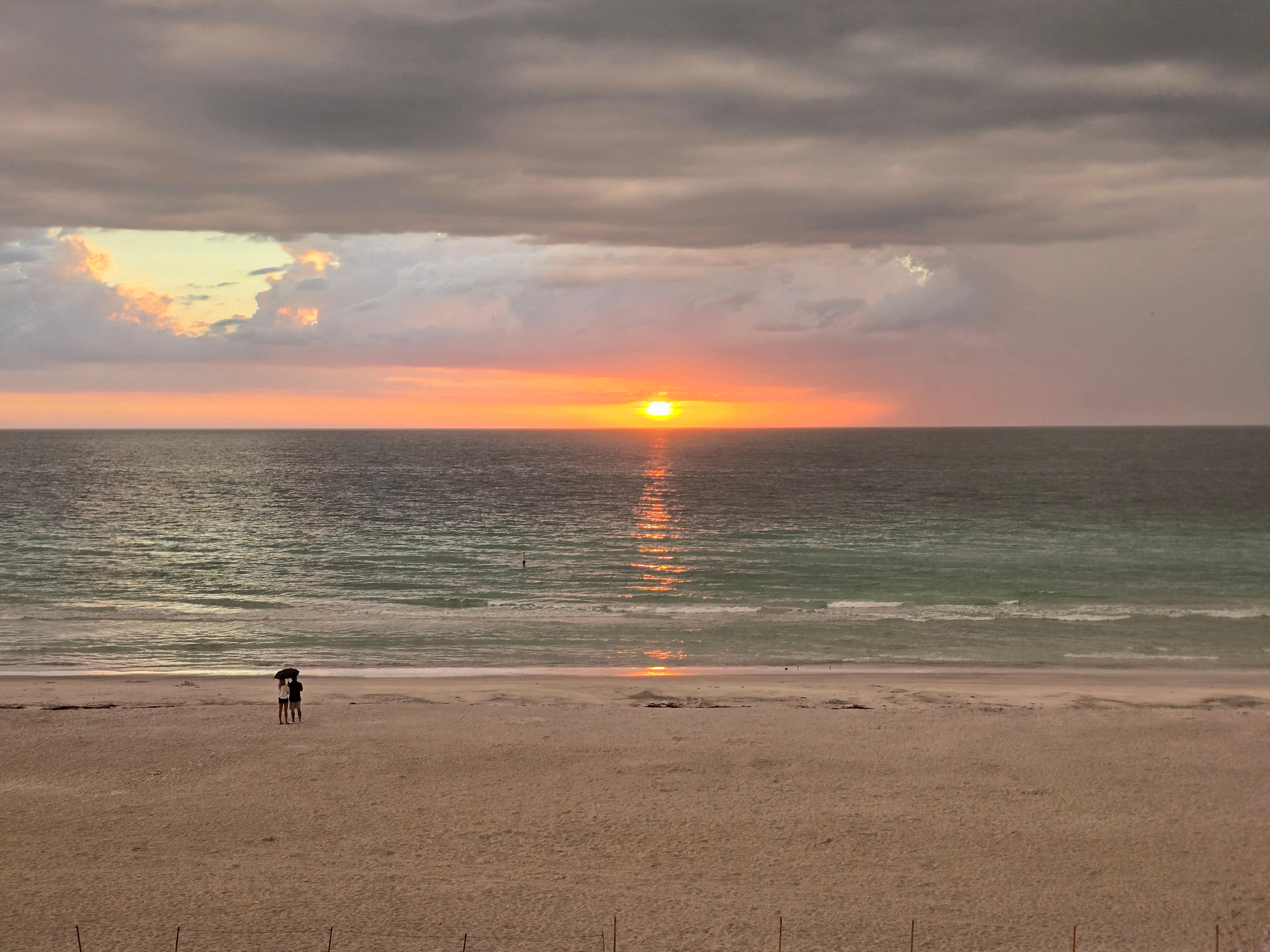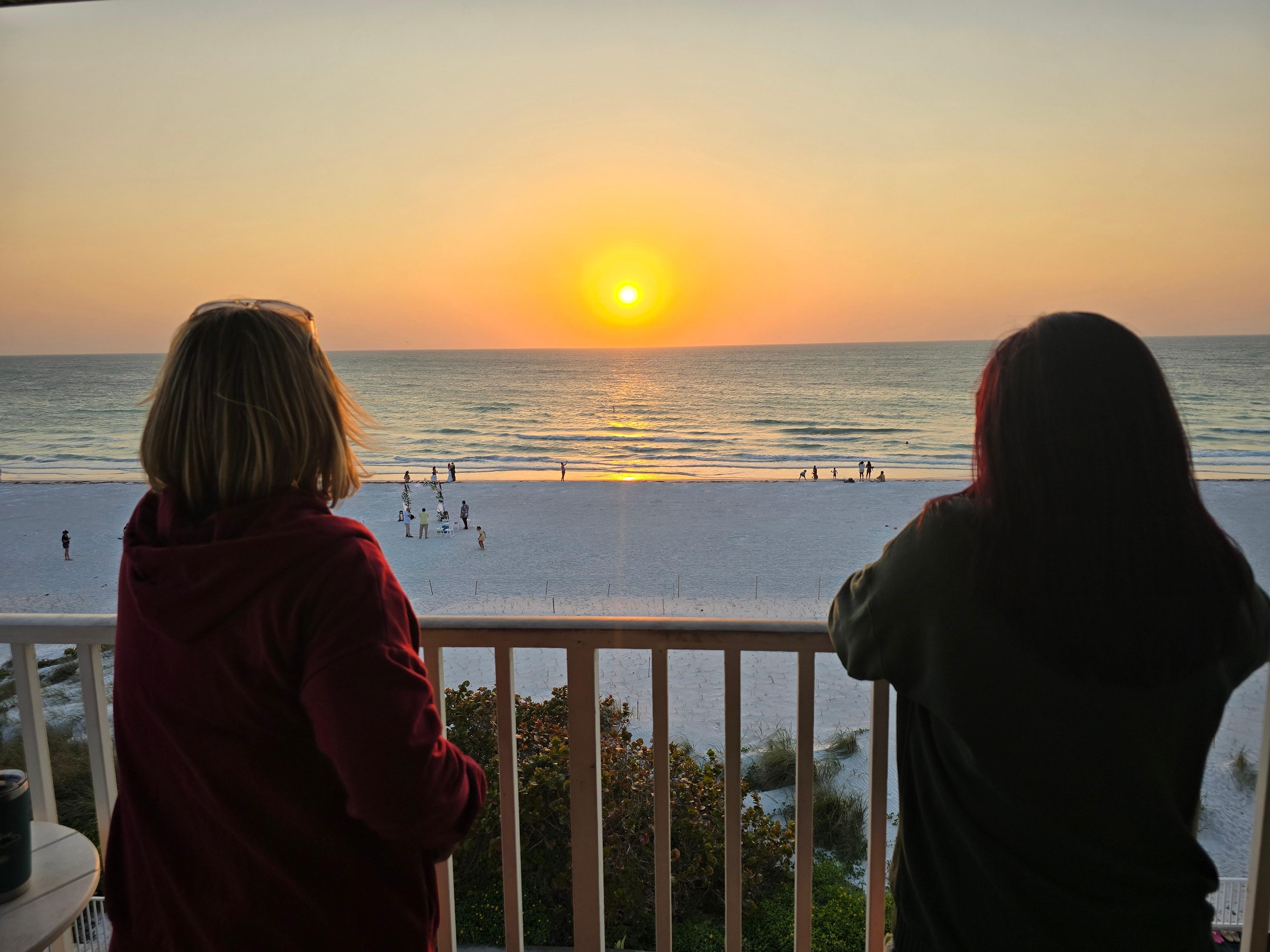 In the living room, there is a flat screen smart TV with surround sound system to enjoy your favorite movie or show, and free WIFI throughout the condo to keep you connected with everyone back home. There is also a queen sleeper sofa in the living room, plus other comfortable seating for the whole family. Exit the living room through the wall of sliders onto your private, top floor balcony to absorb the sea breeze and sunshine. Perfect for enjoying your morning coffee or happy hour drink of choice! The private balcony also features the elevator that takes you to and from your balcony where you will enjoy fabulous sunset views, dolphin watching or just relaxing after a long day at the beach or the pool.
