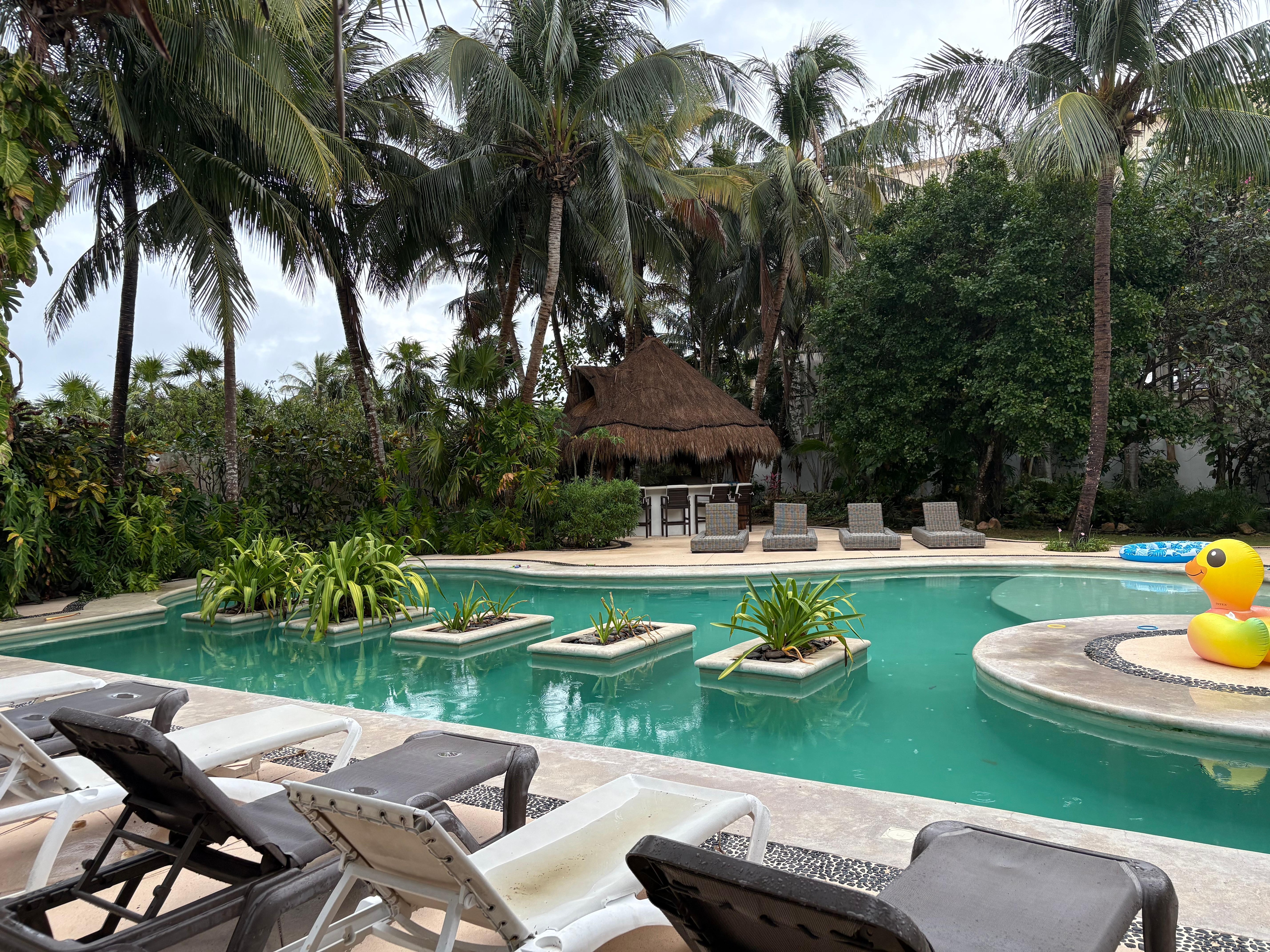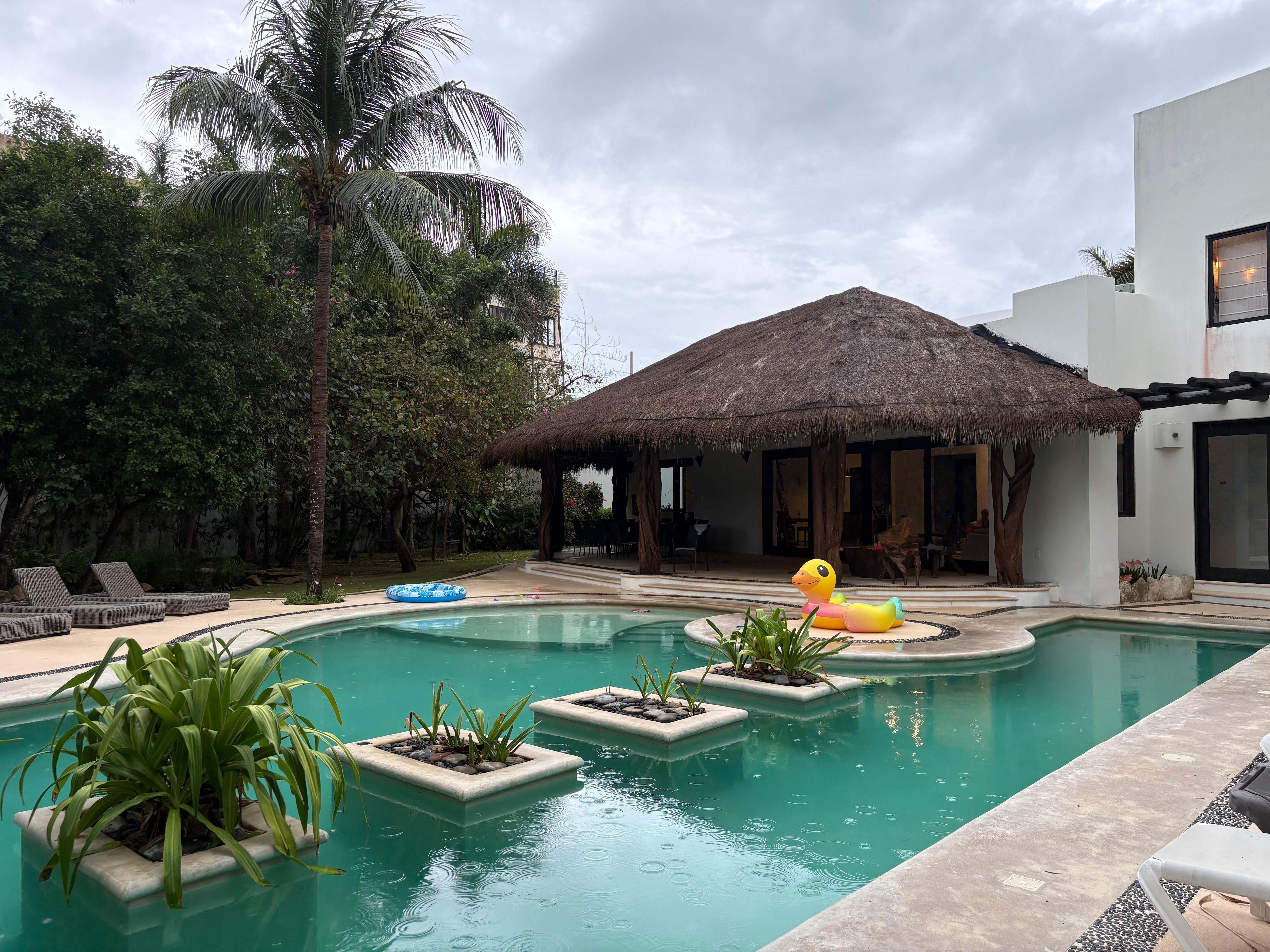 Staying in Casa De La Luz is all about LUXURY and LOCATION, LOCATION, LOCATION. The house sits in the hearth of Akumal with in 2 minutes’ walk to the stunning white sandy beach, restaurants, art and crafts stores, and the main plaza. The house architecture is unique and once you enter the house you will fall in love and will never want to leave. This private gate away is nested by chit palms, other native trees, plants, pond and spectacular pool. The entire property is surrounded by 8 feet wall providing full privacy and a relaxing atmosphere. This is the perfect vacation home where you can enjoy a book, sip your favorite drink and just relax. The only one missing is you!!!!