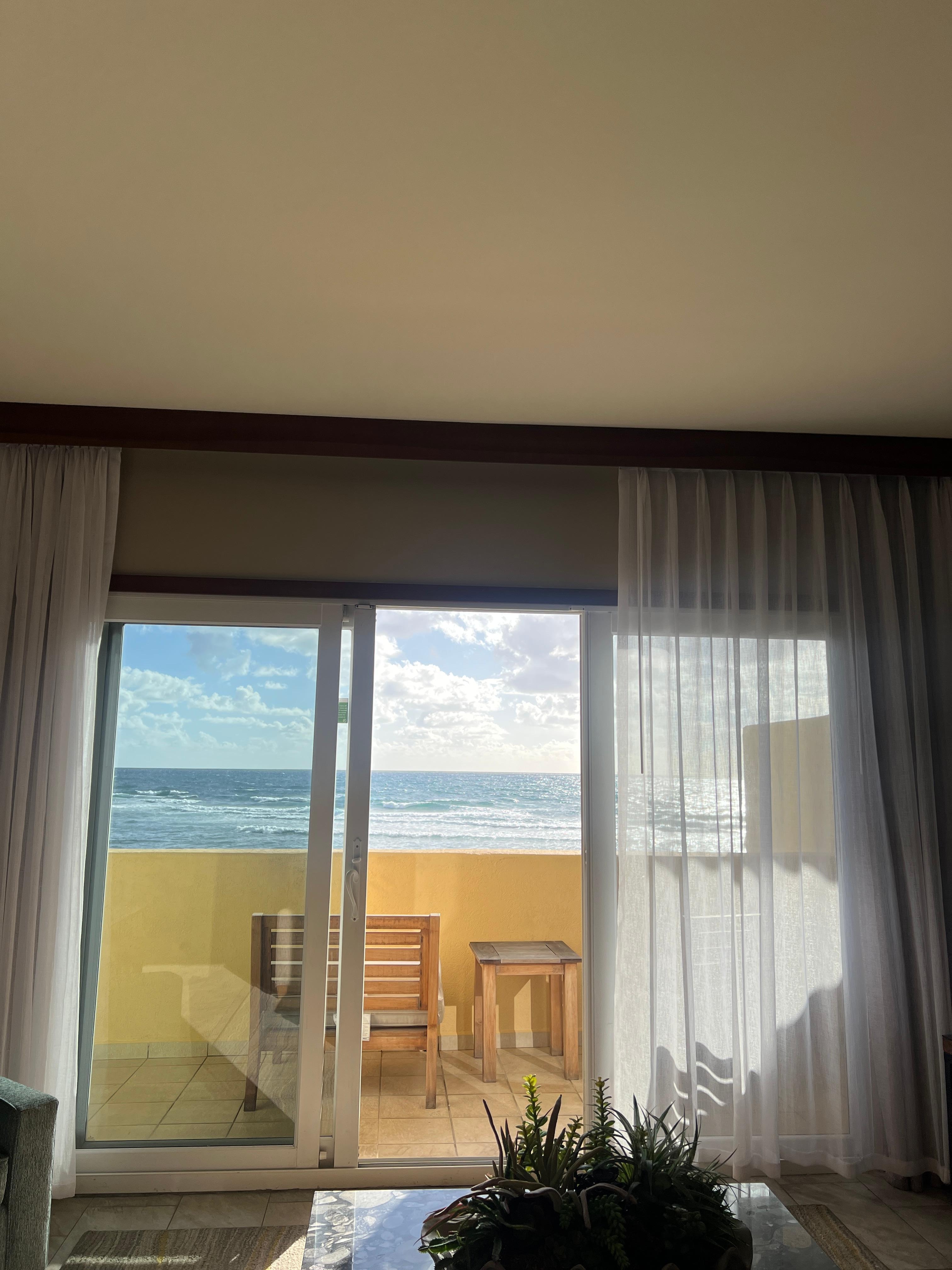 This place is magical. The view is spectacular and the waves on the beach are very calm. The surf breaks 100 yards off the shore, so it's safe for the kids to swim as well.