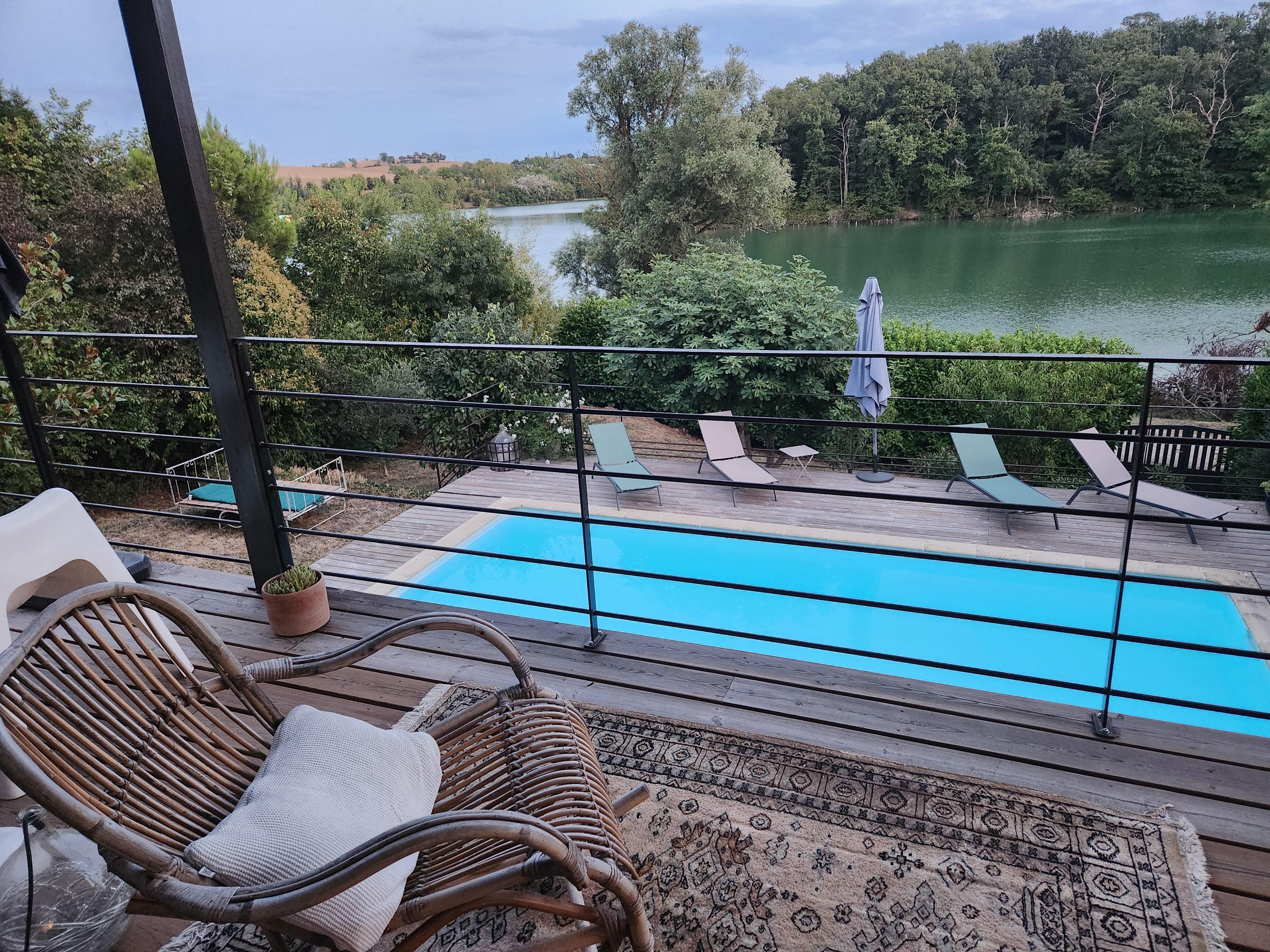 We rent our house, capacity 7 / 8people, with its garden on the front line on the lake of Thésauque, facing south, its summer kitchen by the pool.