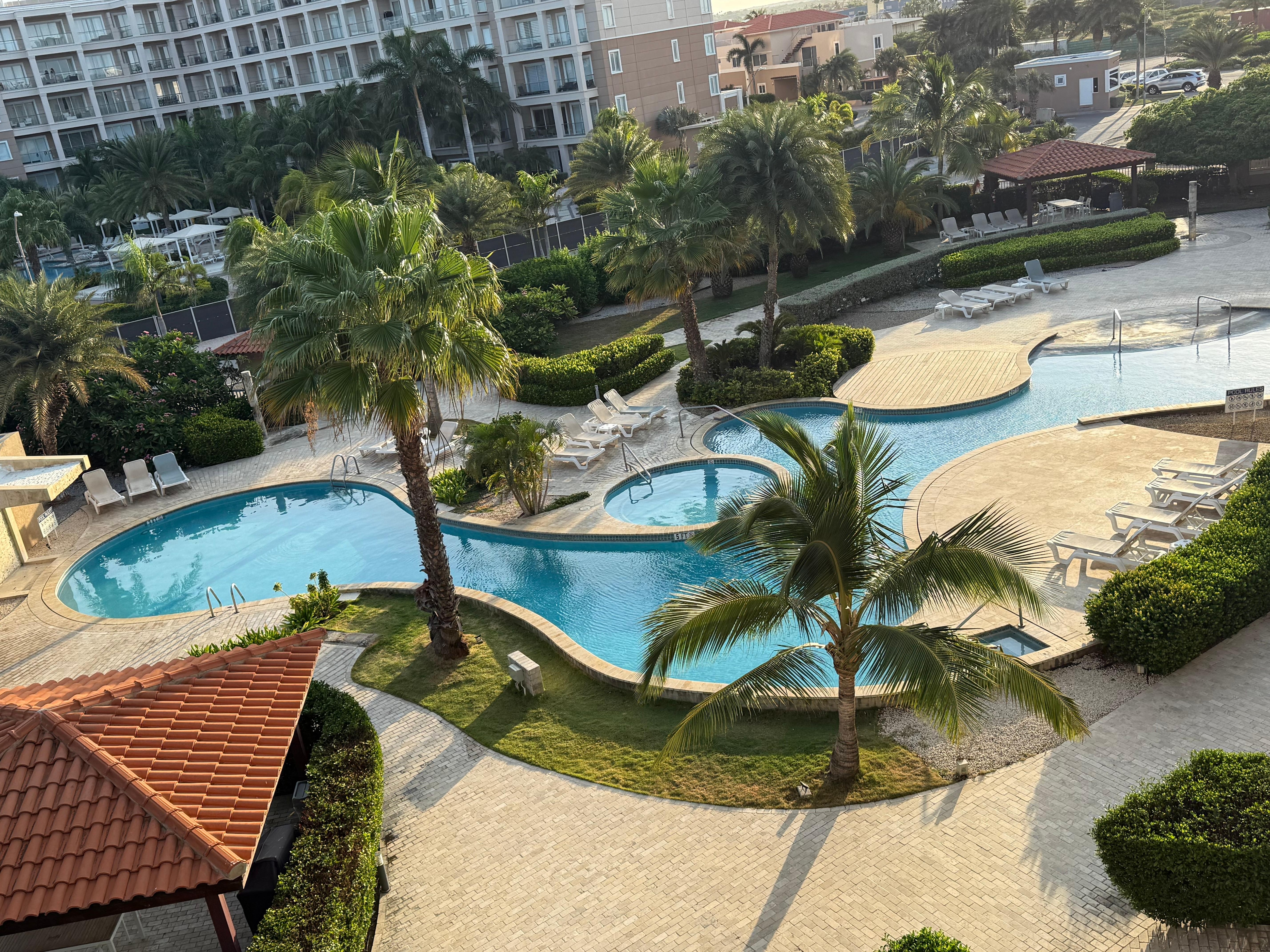 Walking distance good restaurants on the island like the Chalet Suisse, Screaming Eagle, Passions on the Beach, also very close to the largest and modern supermarket of Aruba, Superfood.