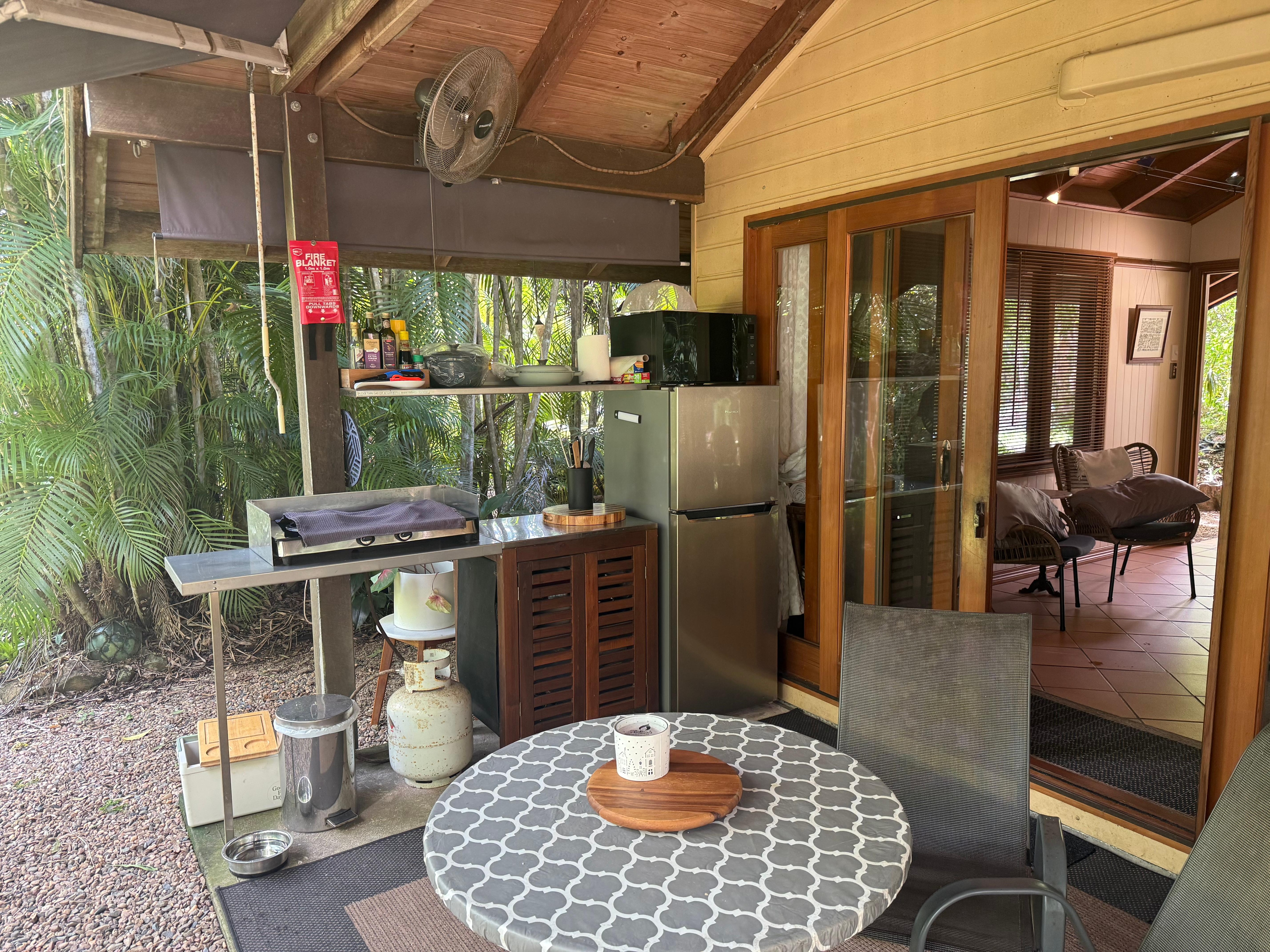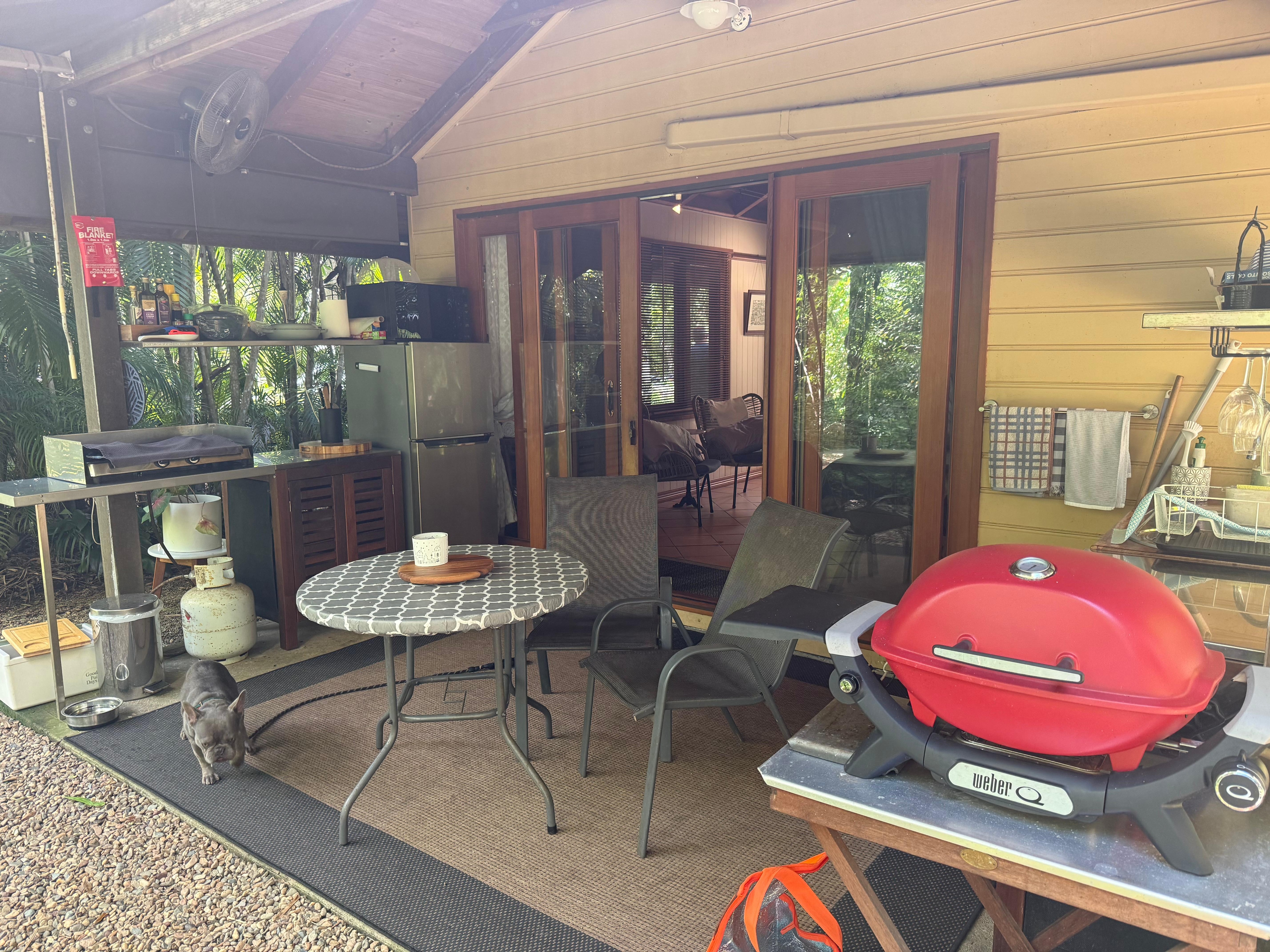Located only 10 minutes from Airlie Beach, this property is a little gem. We stayed for 3 nights with our miniature Schnauzer and everything was perfect. The owners are fantastic, even provided dog water dish and dog towels. The fridge was also stocked with some goodies for us which we very much appreciated. I love the outdoor shower and also the outside seating / cooking area. Would very highly recommend this property.