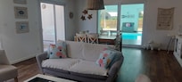 The house, on one level of 115 m2, with direct access by bay window to the swimming pool area, will offer you great benefits: a fully equipped kitchen open to a spacious and comfortable living room, 4 bedrooms, 1 bathroom, 1 shower room, 1 storeroom, 2 WCs. This house is located in a quiet dead end. Tastefully furnished and decorated in a holiday spirit by the sea, it is functional, bright and comfortably equipped in order to make your stay very pleasant.
