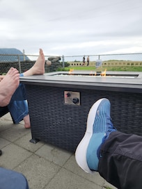 OUTDOOR LIVING: Patio, hot tub, gas fire pit, outdoor dining set, umbrellas, picnic table, beach toys, beach chairs, beach tent, foot rinsing stations